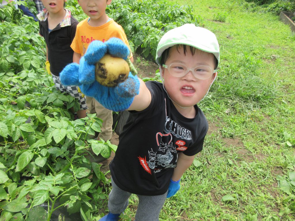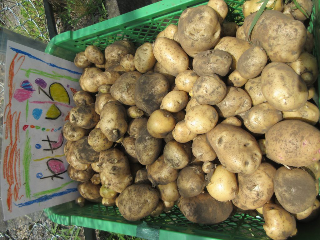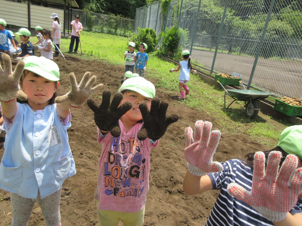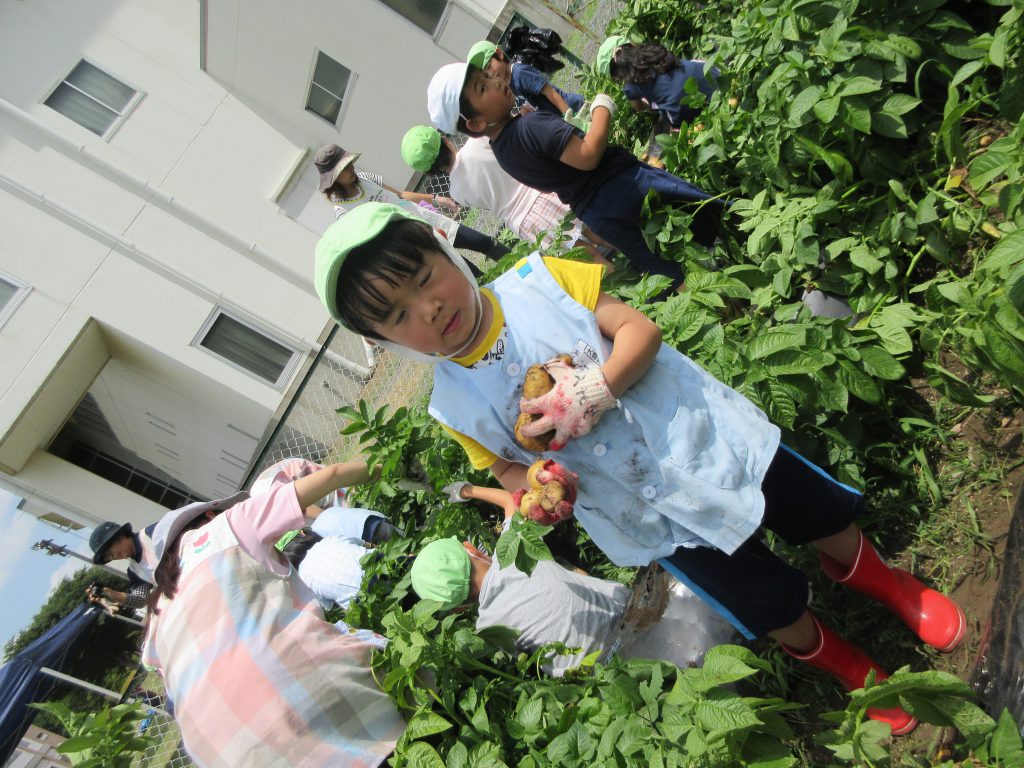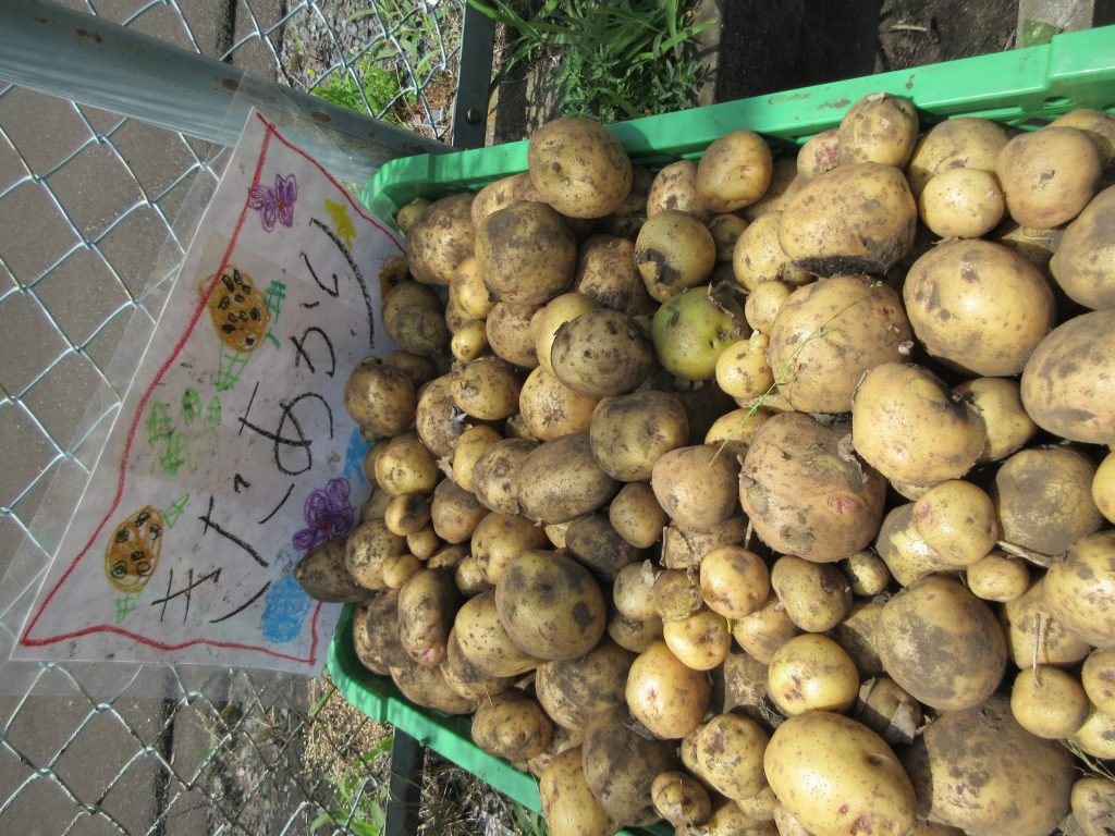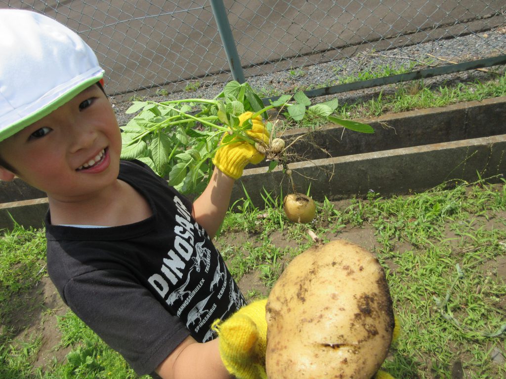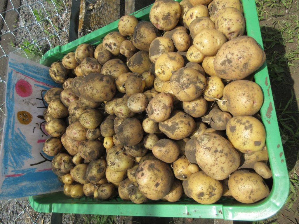 これまでに草取りをしたり,「大きくなあれ!」と様子を見に行った際に魔法のじゅもんをかけたりしたことで,こんなにたくさんのジャガイモを掘ることができました!園でも給食室の方にふかしてもらいみんなで食べてみたいと思います。