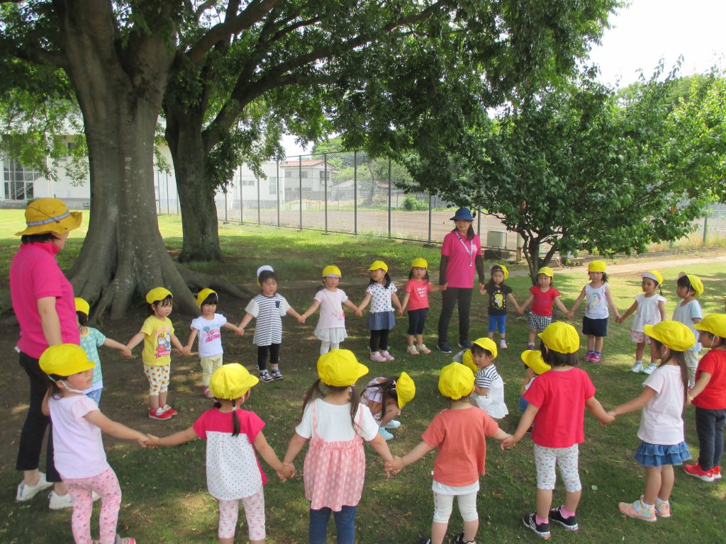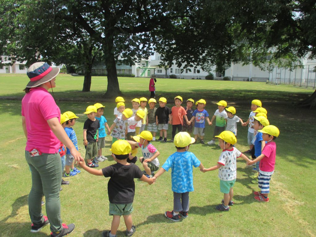 たくさん遊び,おいしいお弁当を食べ,満足した表情を浮かべながら幼稚園へ戻った子どもたち。