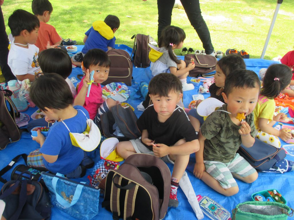 「おいしい〜」「おにぎりにのりがついてるんだよ」などと,友達や保育者にうれしそうに伝えながら,もりもり食べていました♪