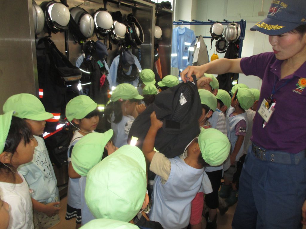 あいにくの雨でしたが,子どもたちはずっと前から楽しみにしていた消防署見学へ元気いっぱい行ってきました!