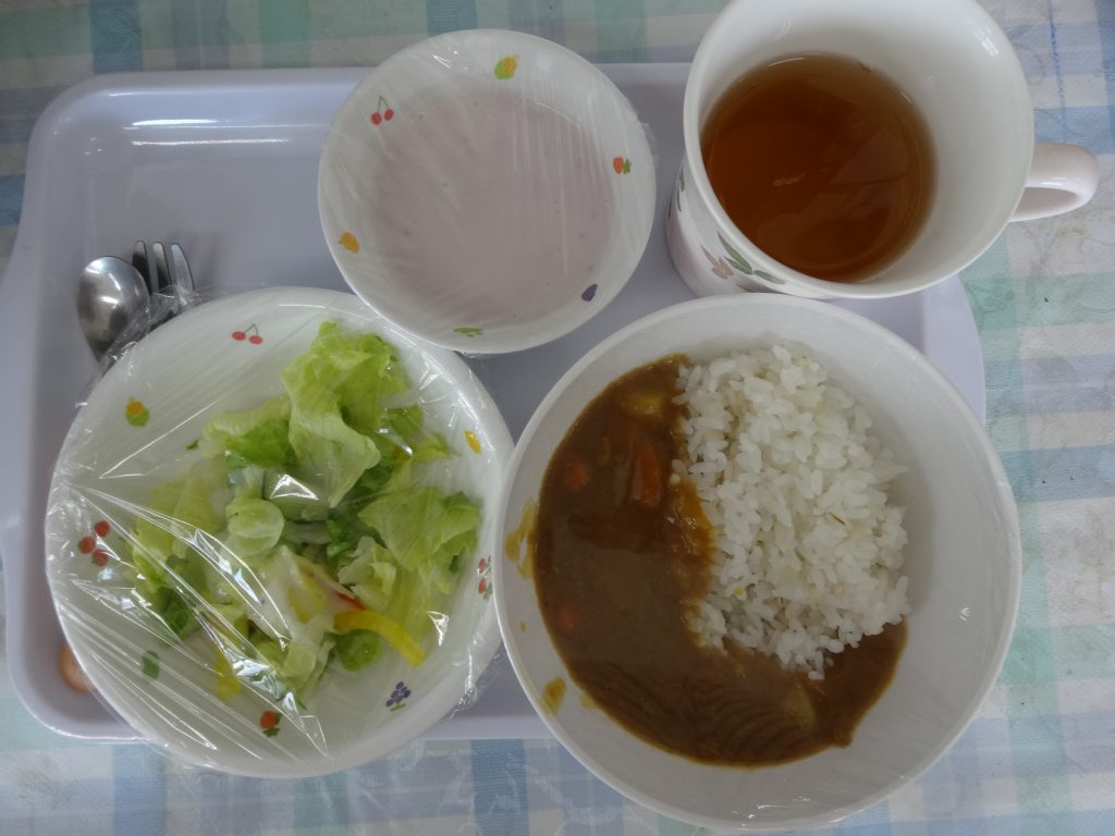 麦ごはん・ポークカレー・彩グリーンサラダ・ブルーベリーヨーグルト