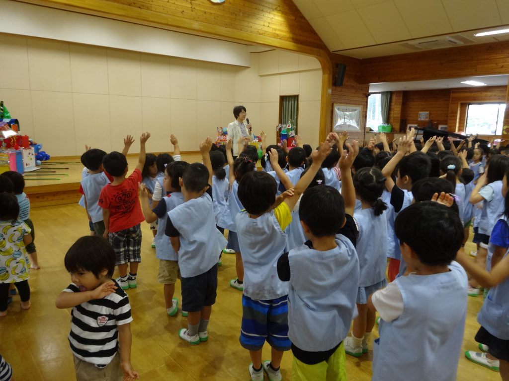 『幼稚園で,お友達と仲良く遊べましたか?』の質問には,たくさん手が上がりました。