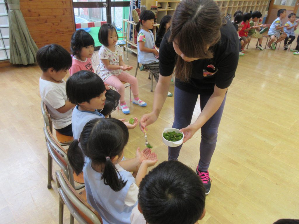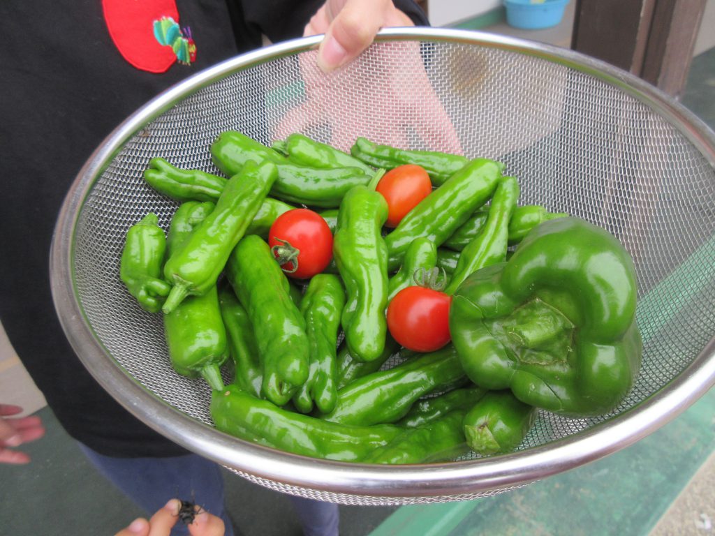 ピーマンが苦手な子も「小さいの・・・」と自分たちで育てた野菜なので,頑張って挑戦する姿が見られていました。