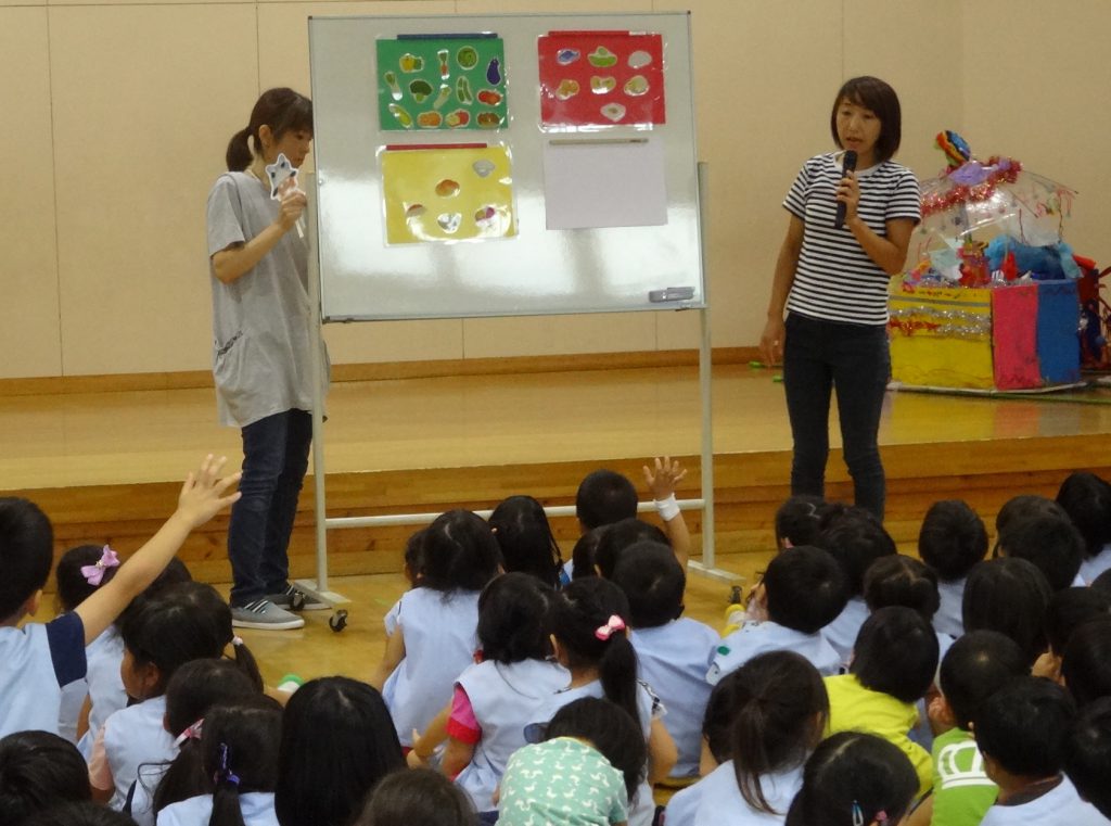 始業式では,園長先生より,夏休みのお約束についての振り返りや,新任の先生の紹介などのお話がありました。