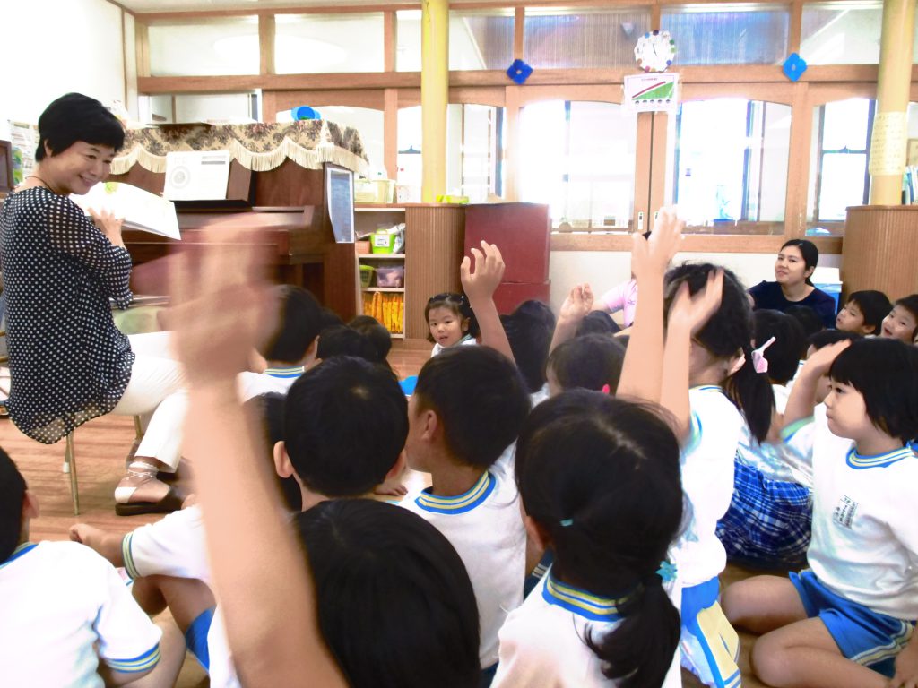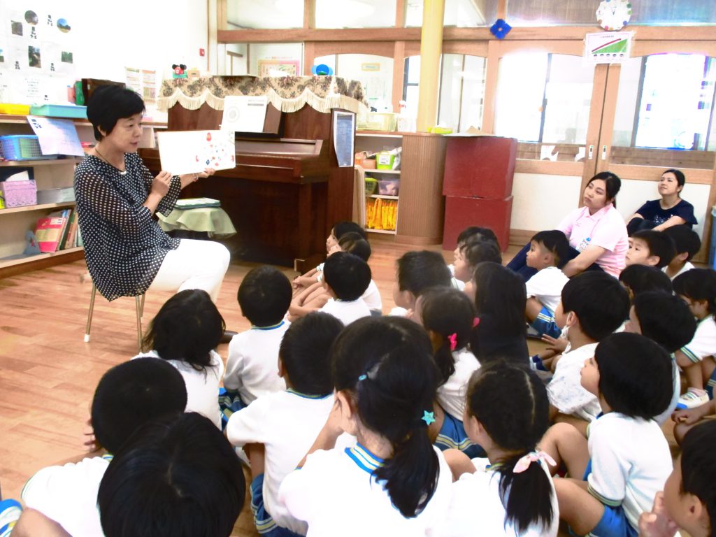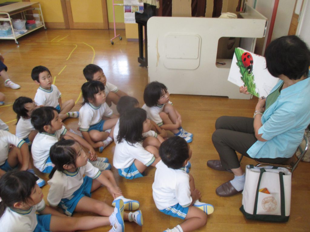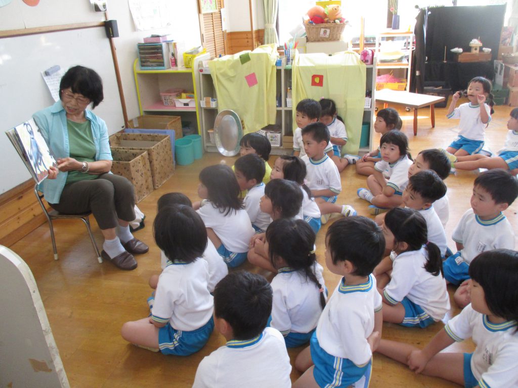 本日お話の会ルピナスより,4歳児クラスに読み聞かせにきていただきました。