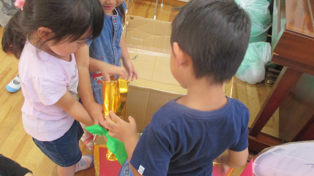 最後まで頑張って取り組んだスポーツフェスティバルが終わり,クラスに登園した子どもたちが宝箱の中から何かを発見しました。