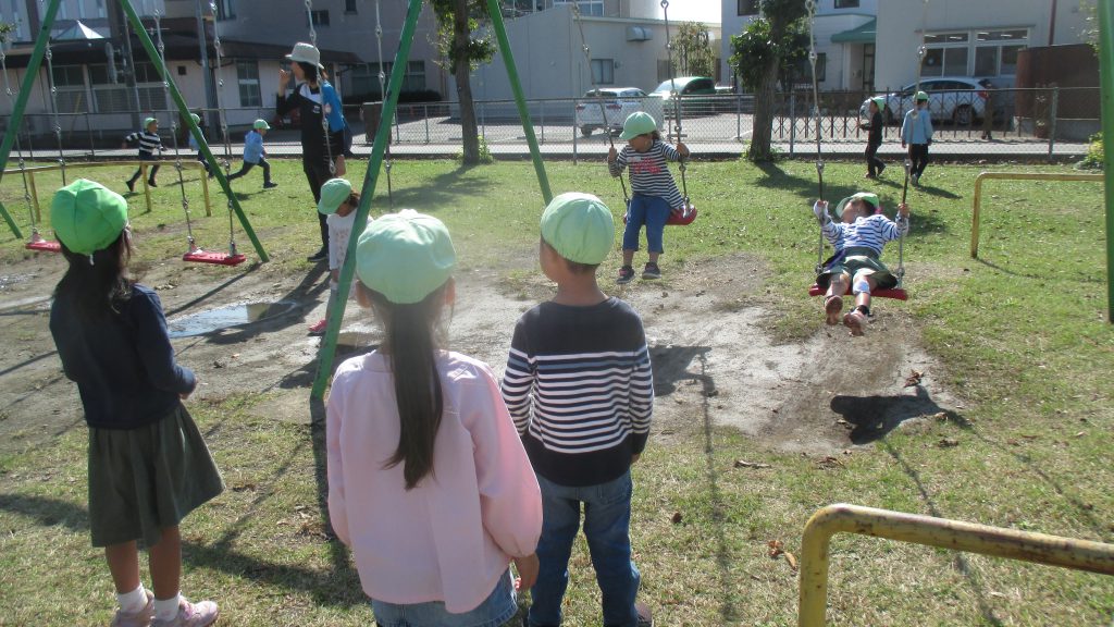 遊具で遊んだり,広いグラウンドで鬼ごっこをしたり,木の実を拾ったりしてたくさん遊びました。