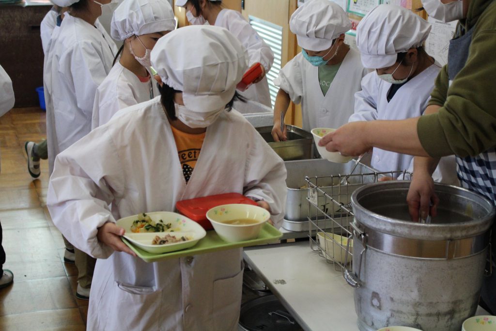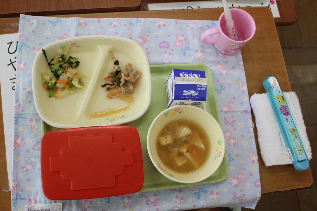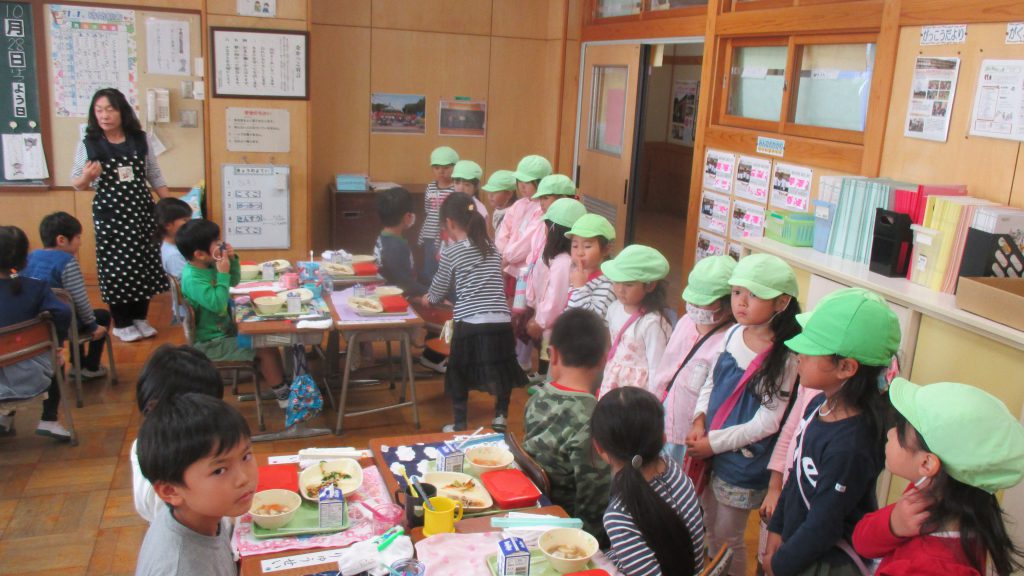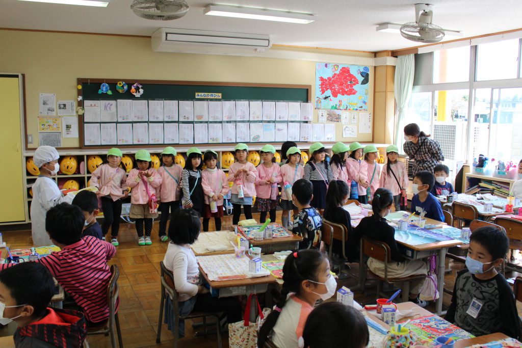 お皿の大きさの違いに気づいたり,牛乳が出ることを知ったり,20分間で食べることを教えてもらったり‥小学校の給食についてたくさんの発見がありました。