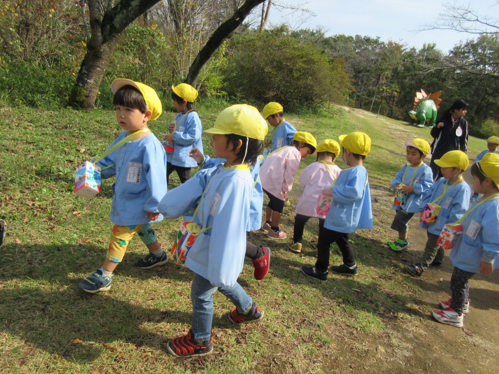 自分で作った探険バックを持ち,自然物と恐竜を探しにいざ出発!!