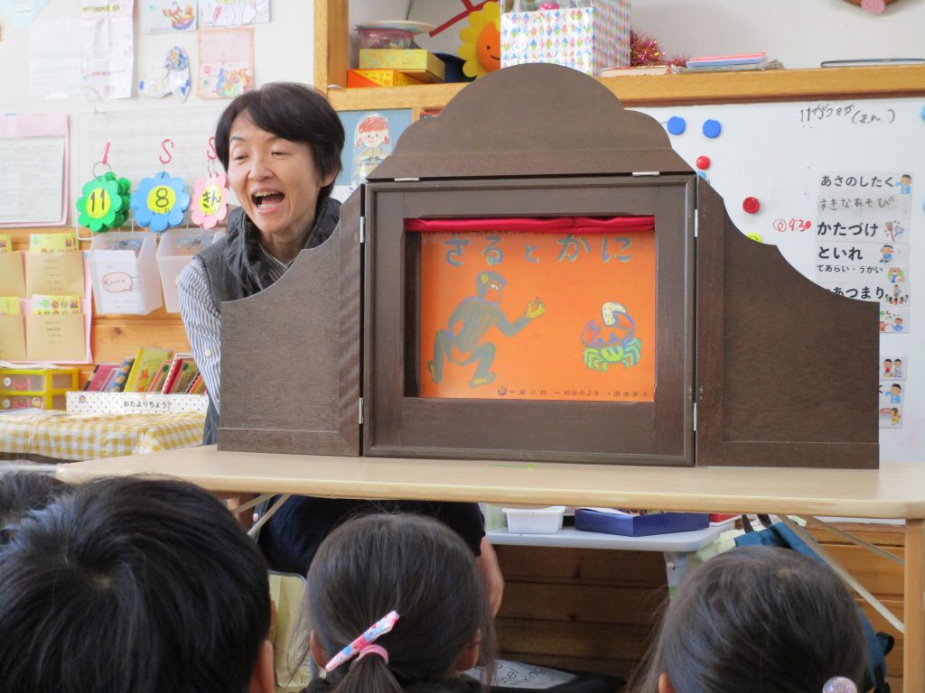 「さるとかに」「たからさがし」「とべ、カエル、とべ!」を読んでくださいました。