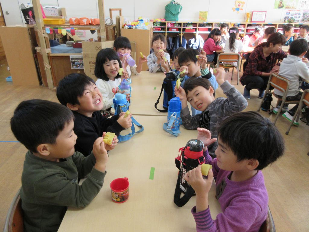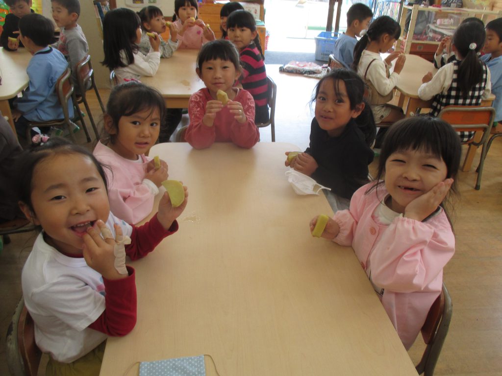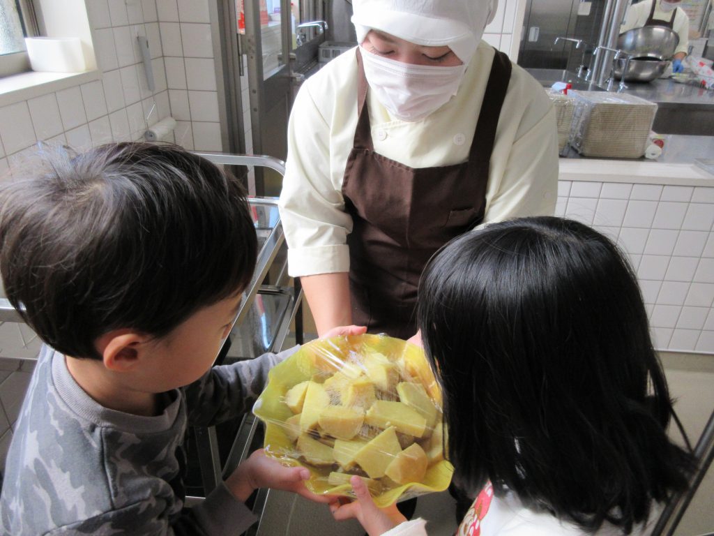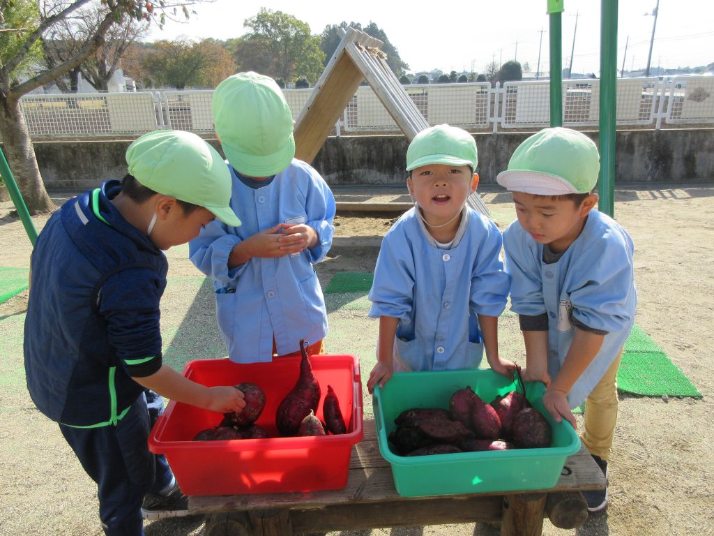 今日は,先日掘ったサツマイモをみんなで食べました?