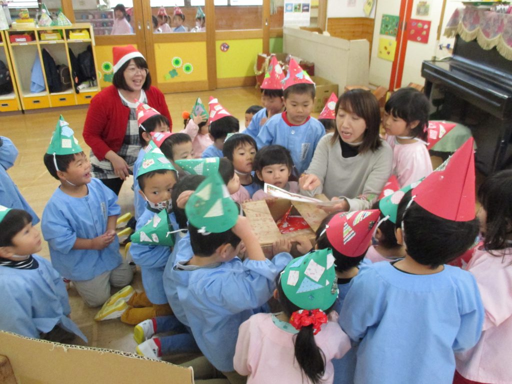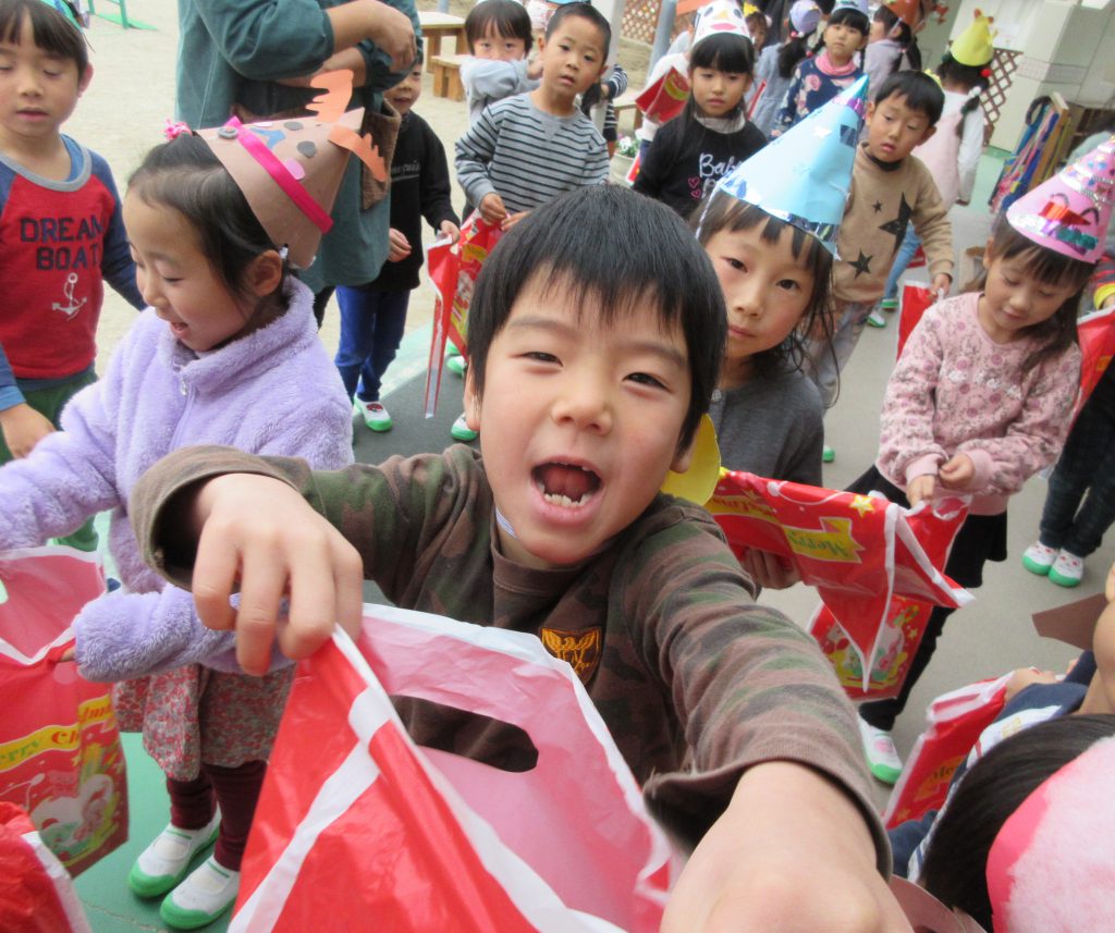 サンタさんが来てくれました!「やったーーー!」歓声をあげる子どもたち!