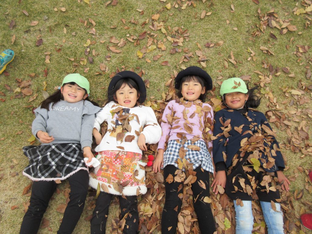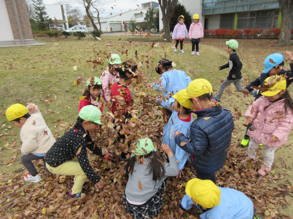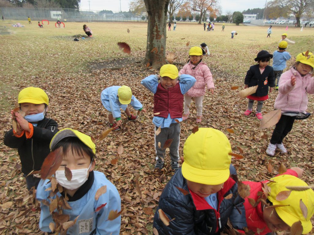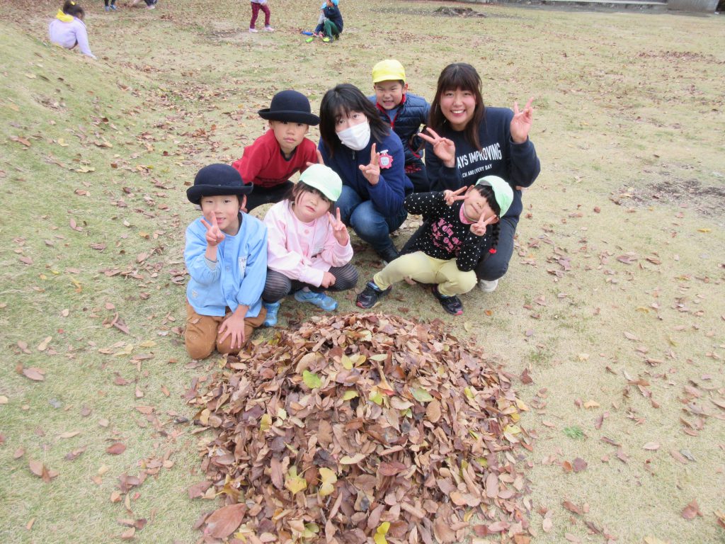 短大の芝生にいってリレーやサッカー,鬼ごっこ,落ち葉集めなどをして遊びました!