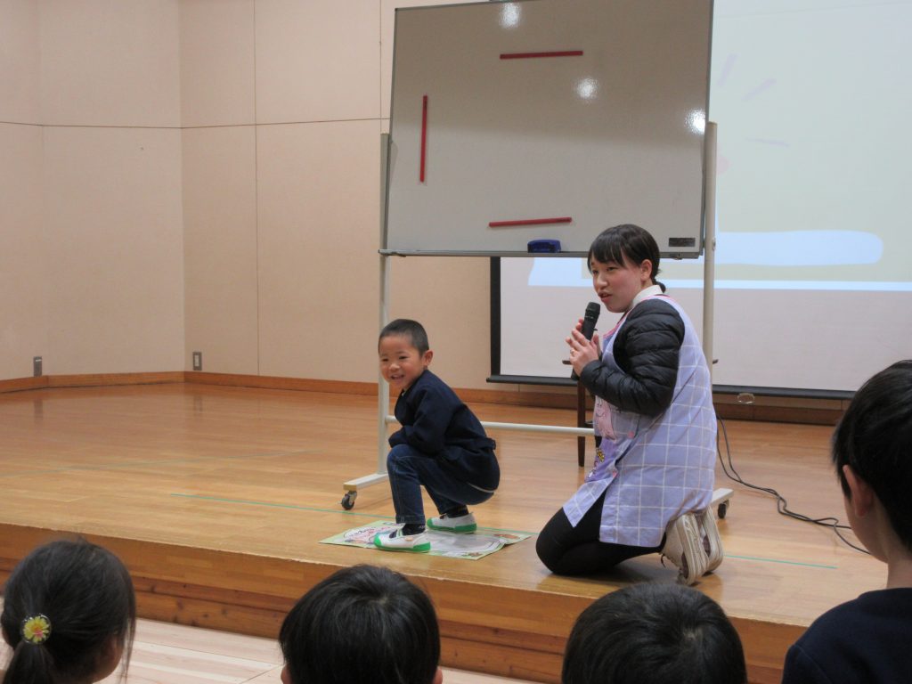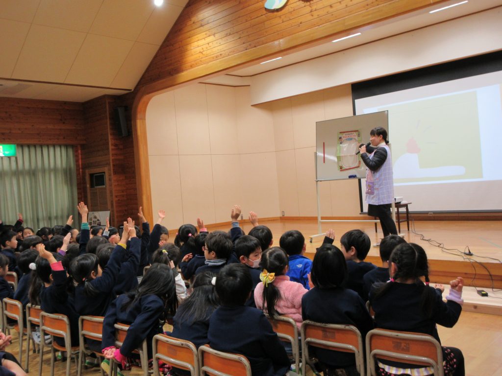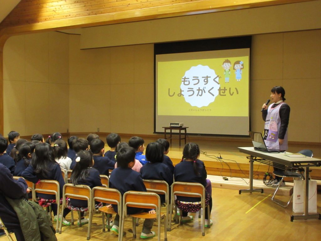 五台小学校の保健室の先生をお招きして,就学に向けての講話を聞きました。