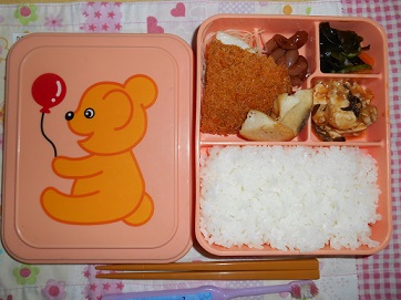 トンカツ・マーボー豆腐・ビーフンのいためもの・ワカメとキュウリの酢の物・ポテトフライ・煮豆