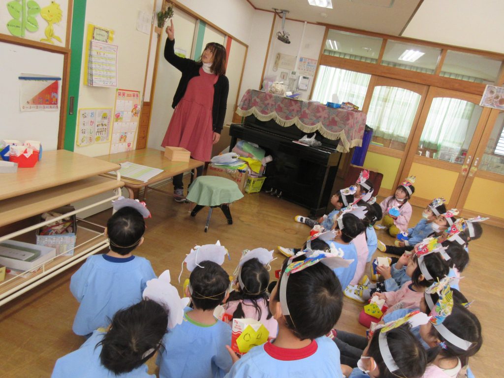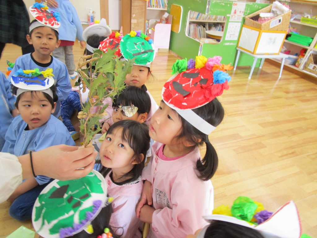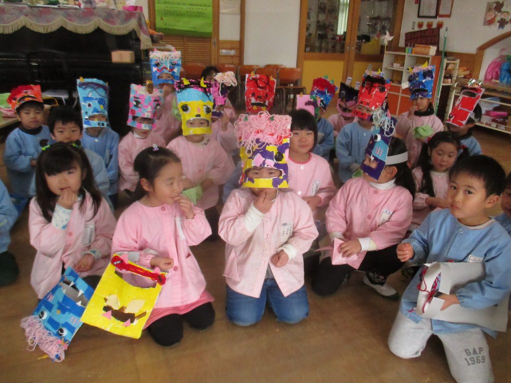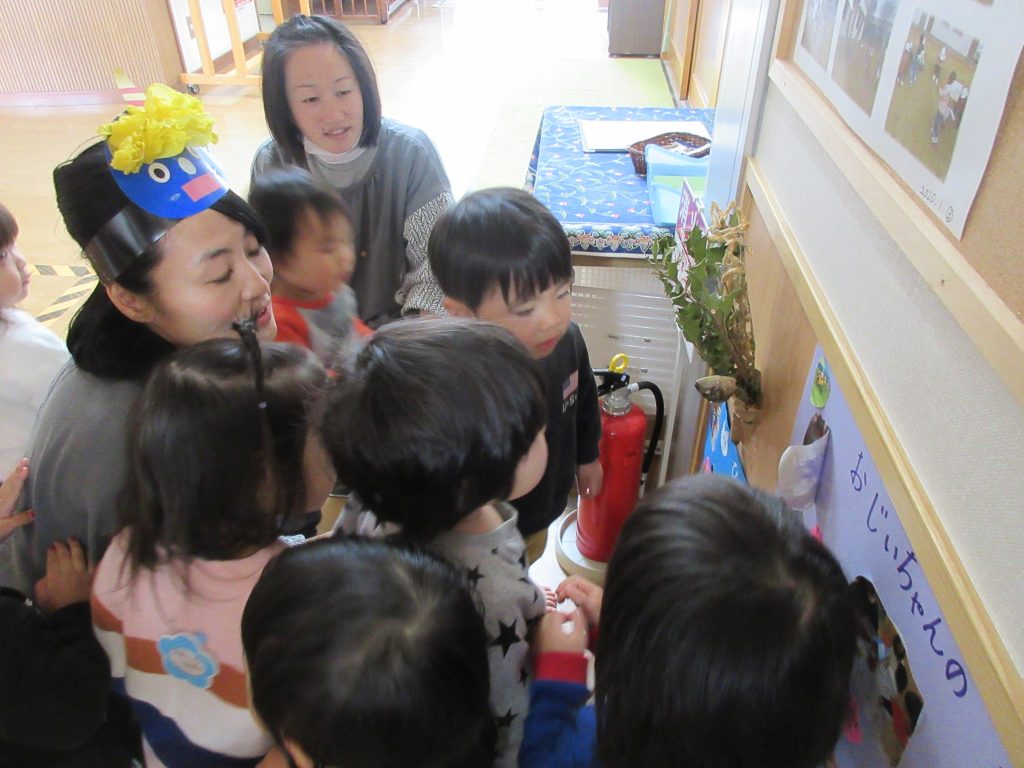 2月3日は節分👹園では豆まき会をしました。魔除けや厄除けとなるひいらぎ,イワシを各クラスに配り、お部屋の中に飾りました♪