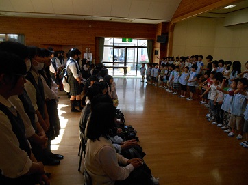 「かわいい~!」「かわいい~!」と言われ、ちょっぴり照れくさそうな年長組の子どもたちでした。