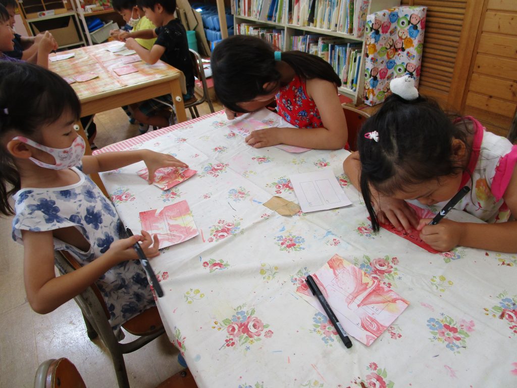 いつも優しく見守ってくれるおじいちゃん・おばあちゃんに,「いつもありがとう」そして「いつまでも元気でいてね」という気持ちを込め,ハガキ作りをしました。