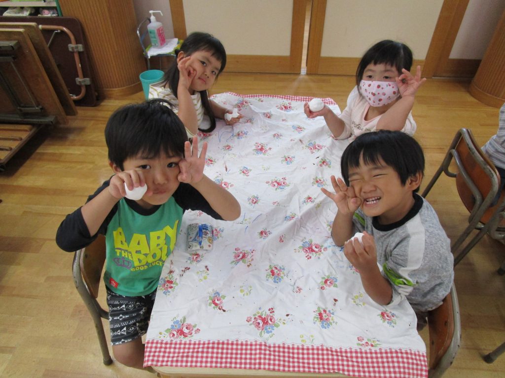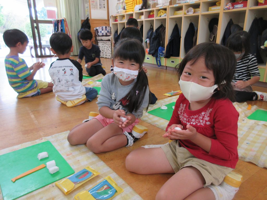 さっそく,みんなで紙粘土のお団子作りを楽しみました!