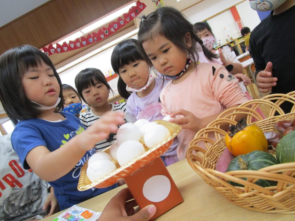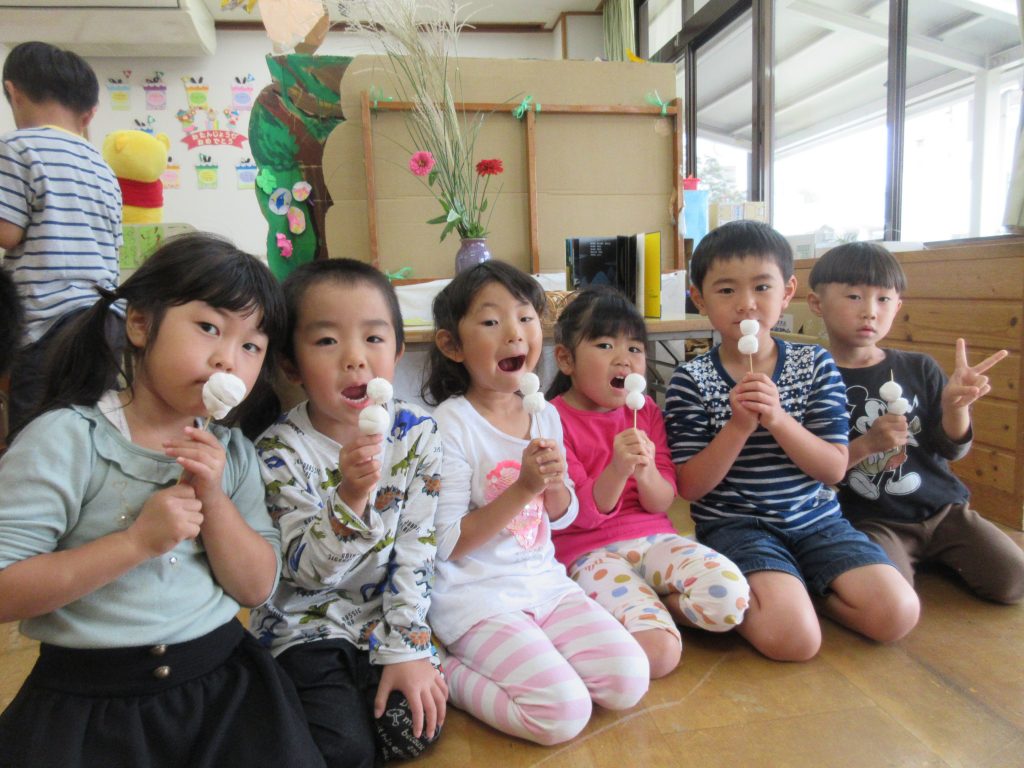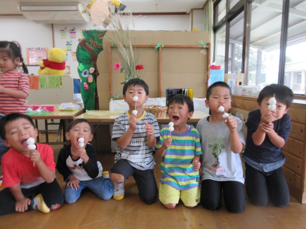 今日は,子どもたちと一緒にお月見のお供え物を作りました。ススキや栗・さつまいも・カボチャはあるので,他に足りないものは何だ?と聞くと・・・