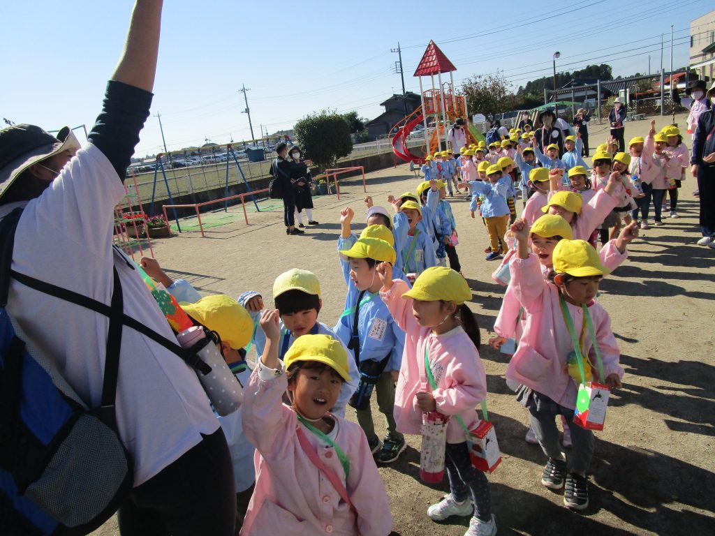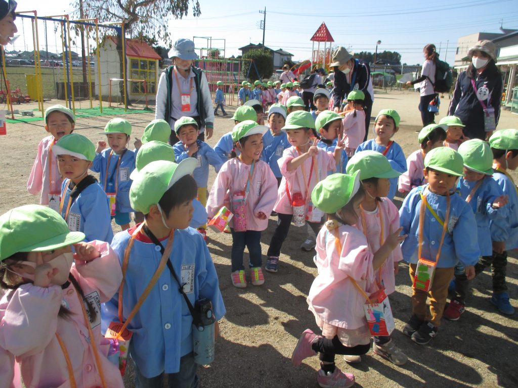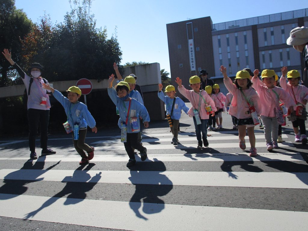 今日は,楽しみにしていた水戸農業高校への園外保育。とても良いお天気になって子どもたちもうれしそうに登園してきました。