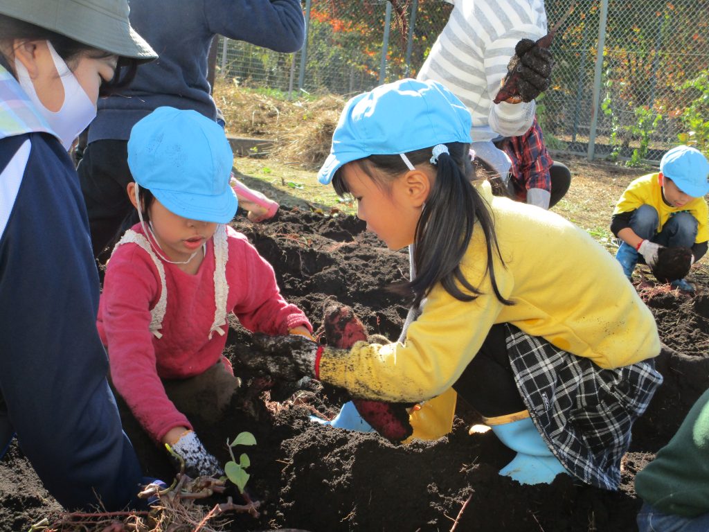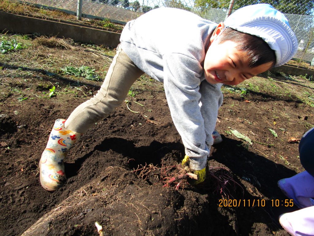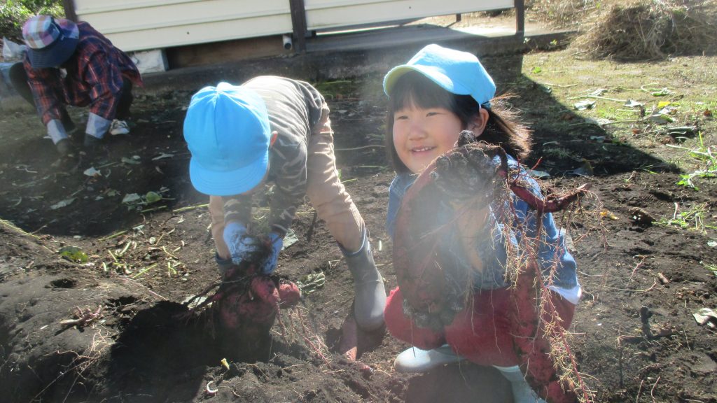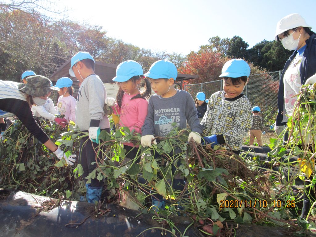 待ちに待った,サツマイモ収穫の日。とても良い天気の中実施する事ができました。