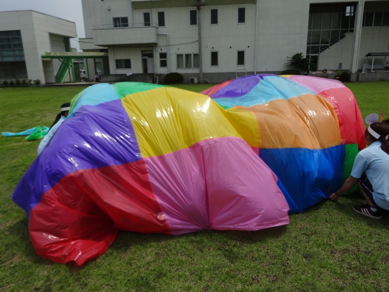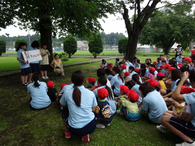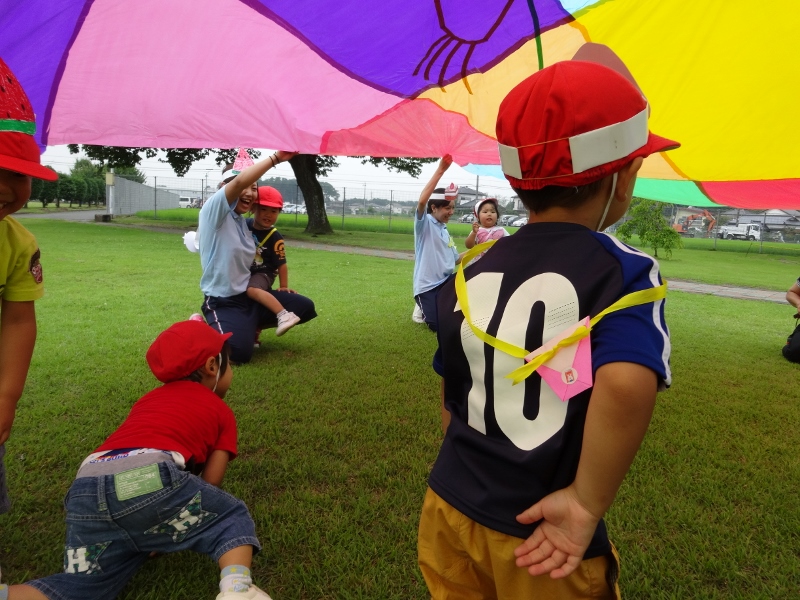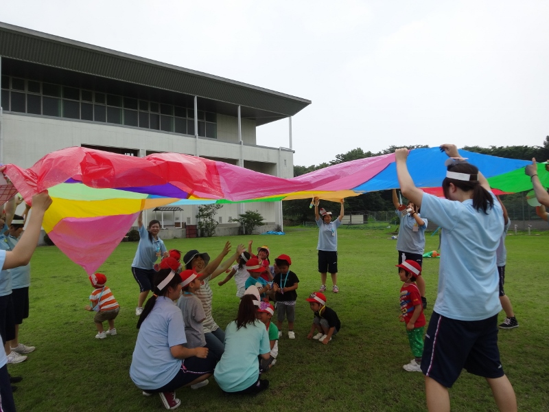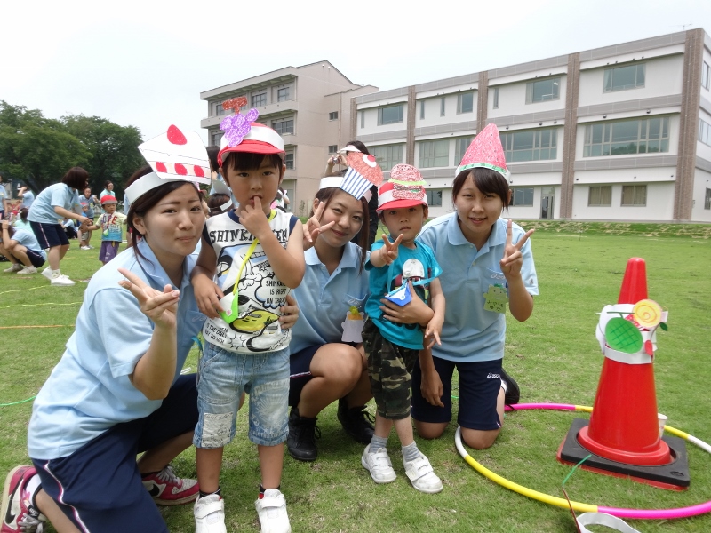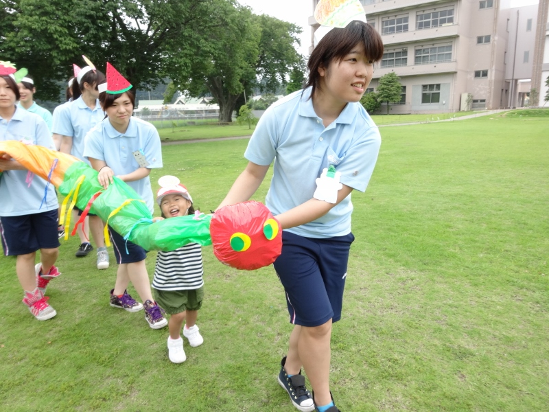 今日(7月3日)は、年少組と短大の1年生が一緒に活動をする「いっしょにあそぼう」の日です。