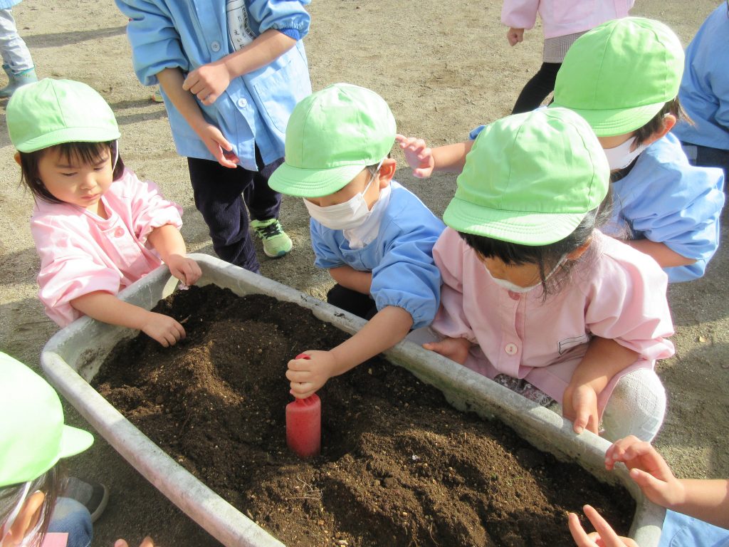「明日になったら芽が出るかな?🌱」「何色かな?」