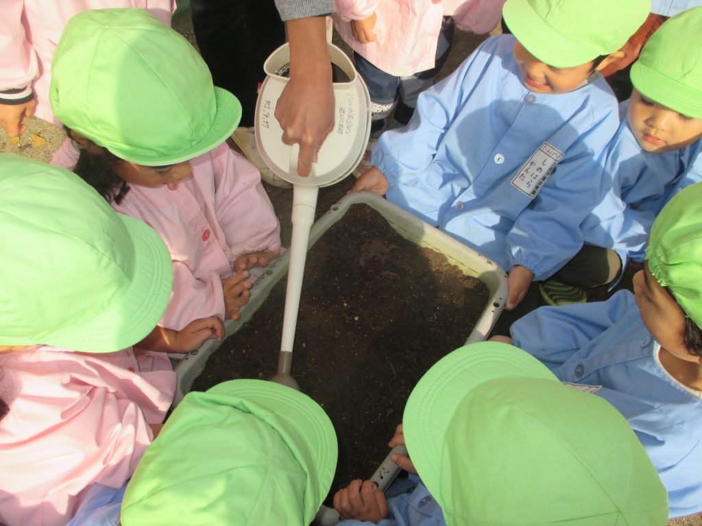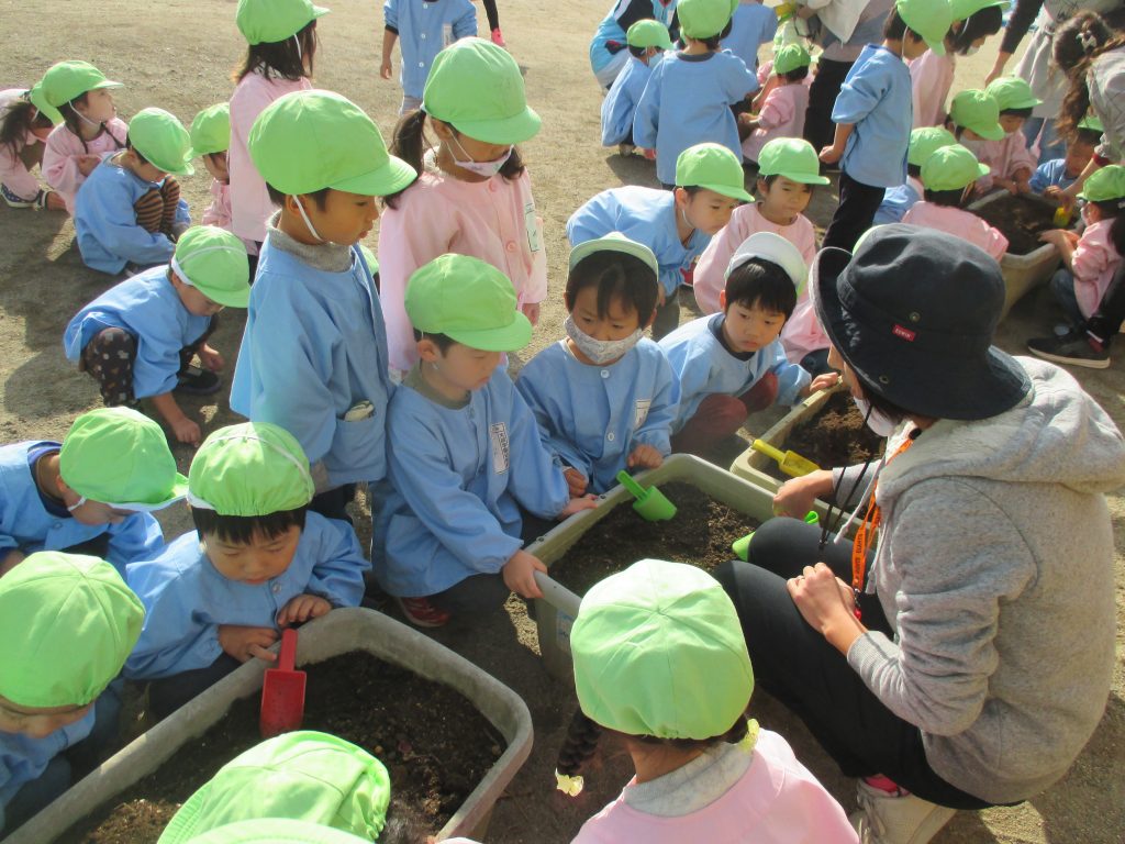 一番初めに球根を目にした子どもたちは,形を見て「玉ねぎかな?」「ニンニクかな?」「でも匂いは全然しないね😲!」など口々に話していました☺️