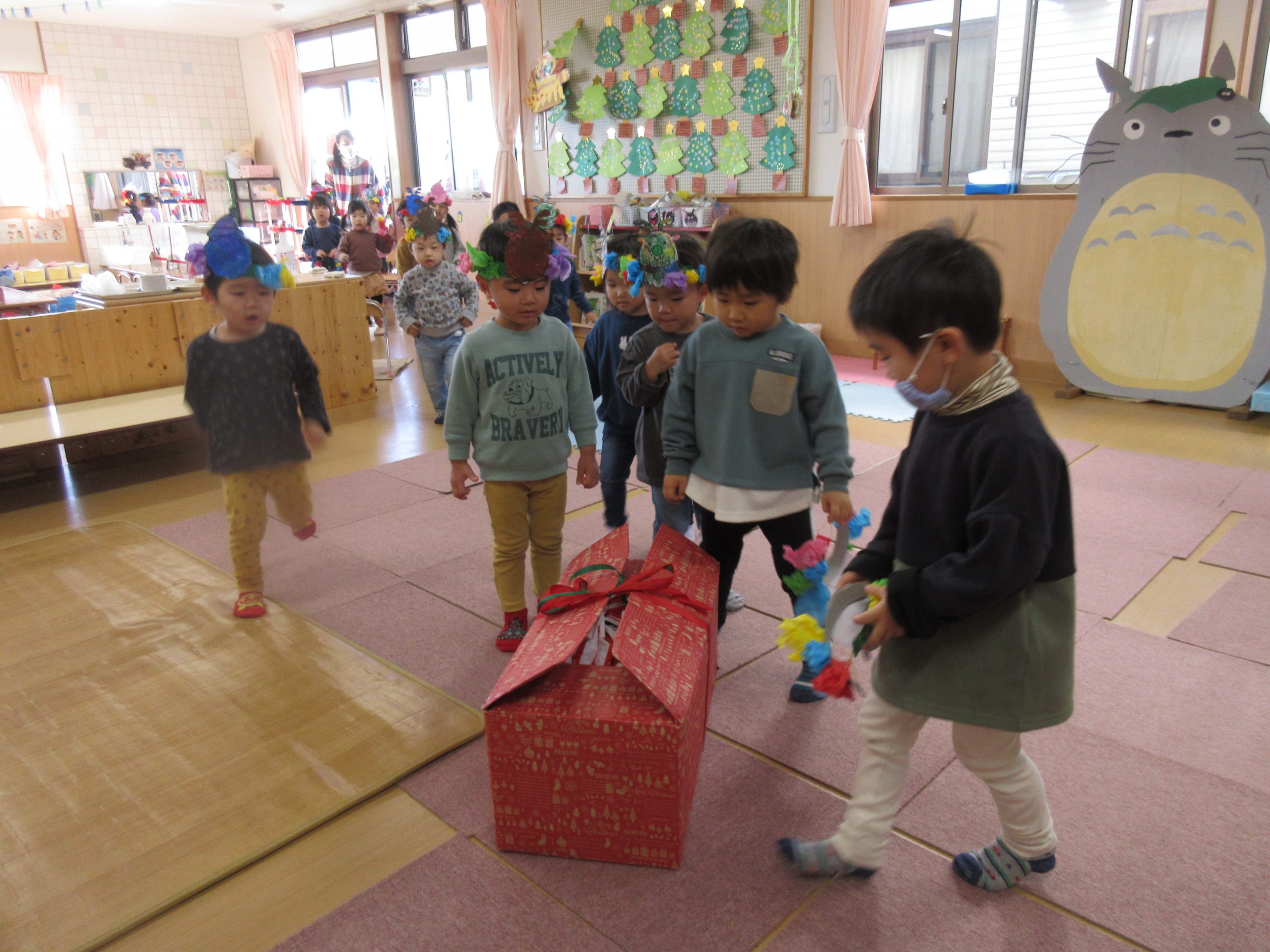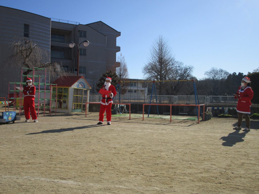 クリスマス会 2020 12/23 ニュース 12月23日(水)にサンタさんが大成学園幼稚園にやってきてくれました! 鈴の音を聞いてテラスに集まった子どもたち。 見習いのサンタさんも一緒に来てくれて,煙突にのぼる練習を頑張っていました!見習いのサンタさんをみんなで応援しました。 サンタさんの登場に興味津々な子どもたち。手作りの帽子をかぶって参加しました。 サンタさんからプレゼントがあることを聞いて驚く子どもたち! お部屋の中にプレゼントの箱を発見!! プレゼントの中身は何かな〜?? うれしそうにプレゼントを開いていました。 記念にみんなでパシャリ☆写真撮影をしました! 手作りの帽子をかぶって給食を食べてクリスマスパーティーもしました♪明日はお家にサンタさんが来ることを楽しみにしていた子どもたちでした☆ ニュース URLをコピーしました! 欠席状況(感染症)12月18日(金) 12月 ☆ にじぐみ コメント コメントする コメントをキャンセルコメント ※ 名前 ※ メール ※ サイト 次回のコメントで使用するためブラウザーに自分の名前、メールアドレス、サイトを保存する。 上に表示された文字を入力してください。 Δ