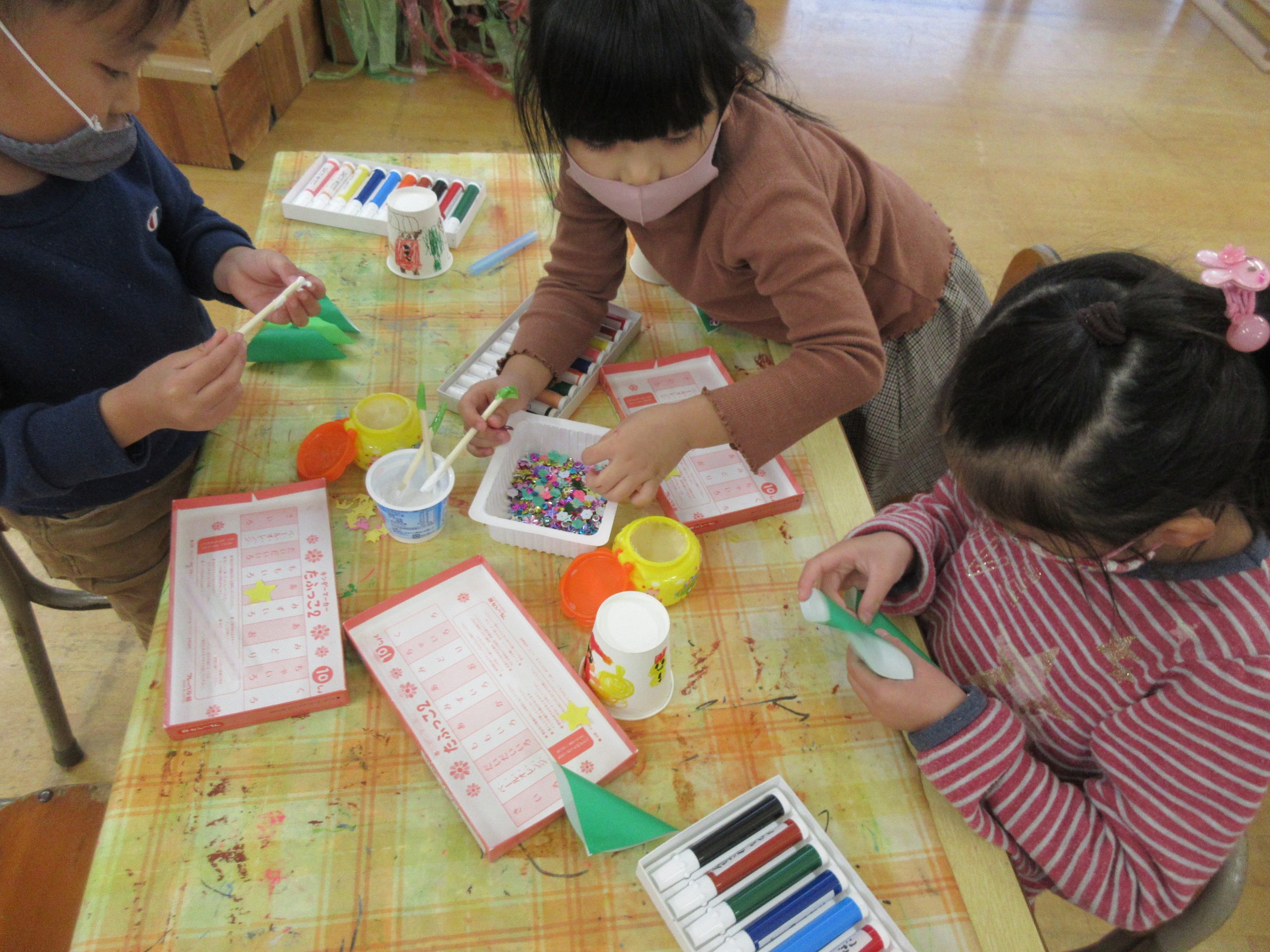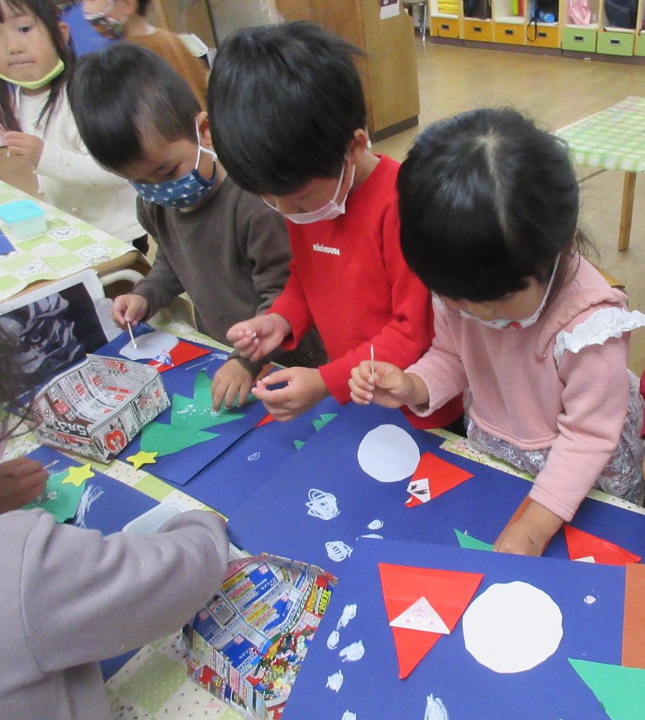 3歳児は,サンタさんとツリーを作りました!