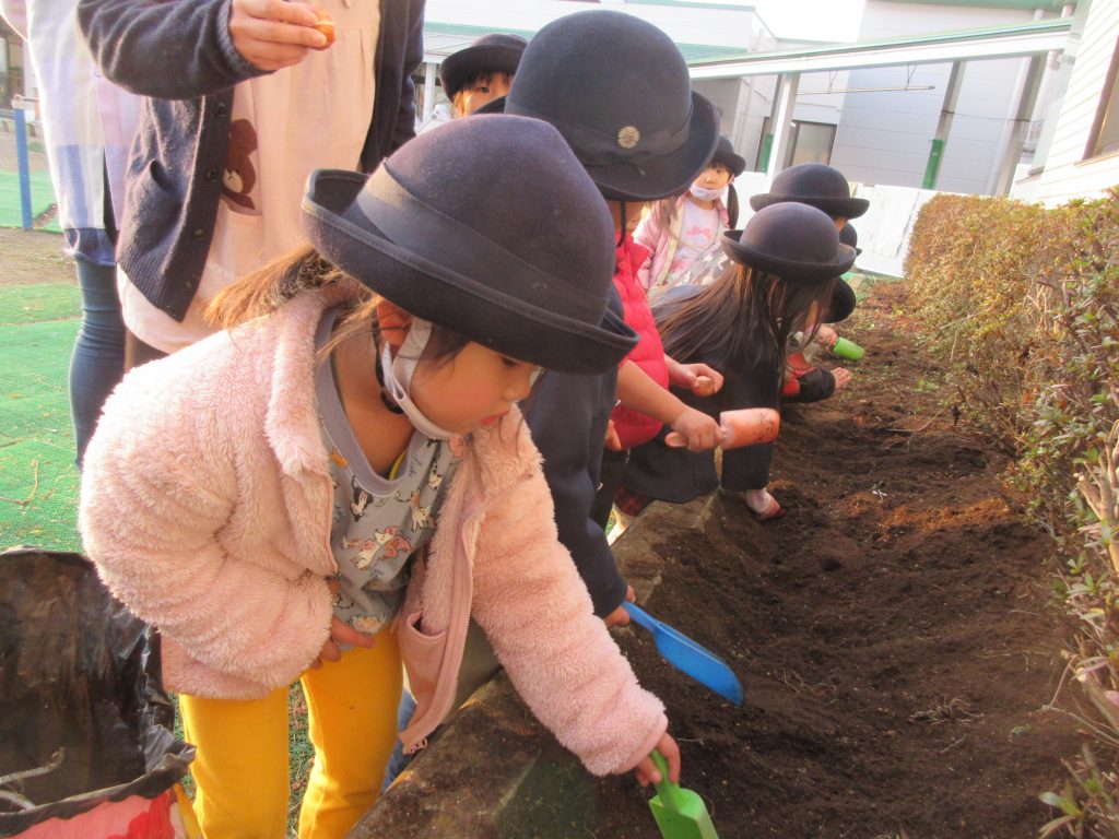 園庭の花壇に,にじぐみのチューリップを植えました!!