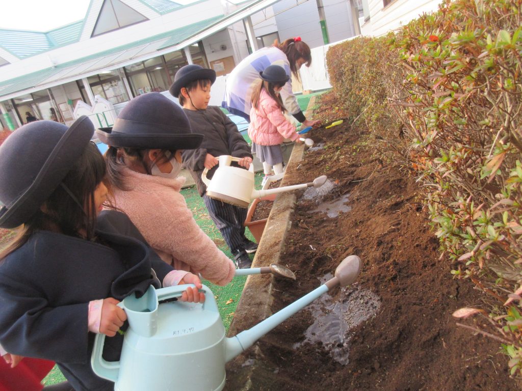 春になって,元気に色とりどりの花が咲くように願いを込めて…。『大きくなーれ!!』