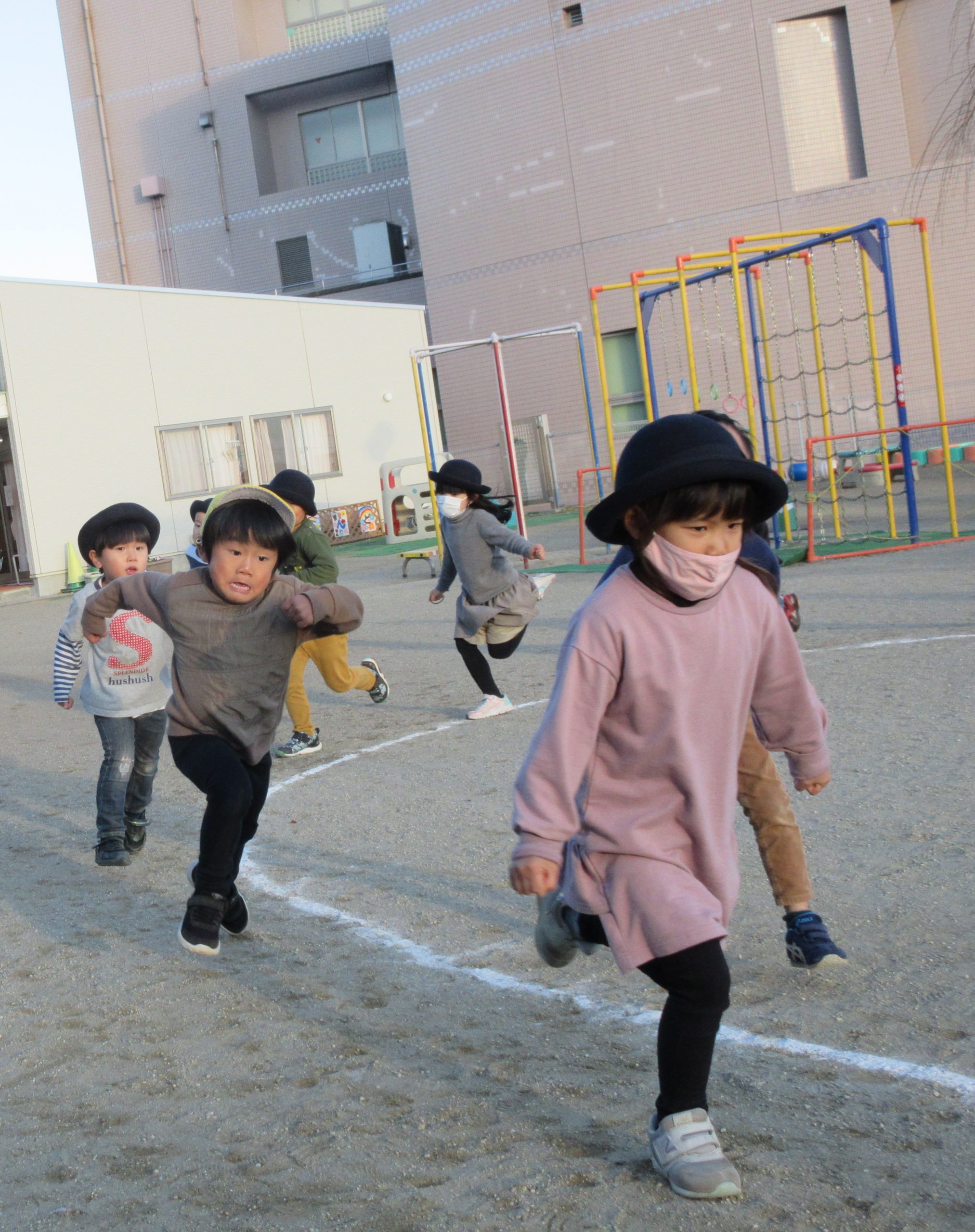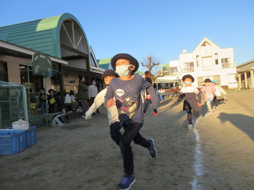 寒い中でも元気いっぱい走ってマラソン大会開始!『何周走れるかな〜?』
