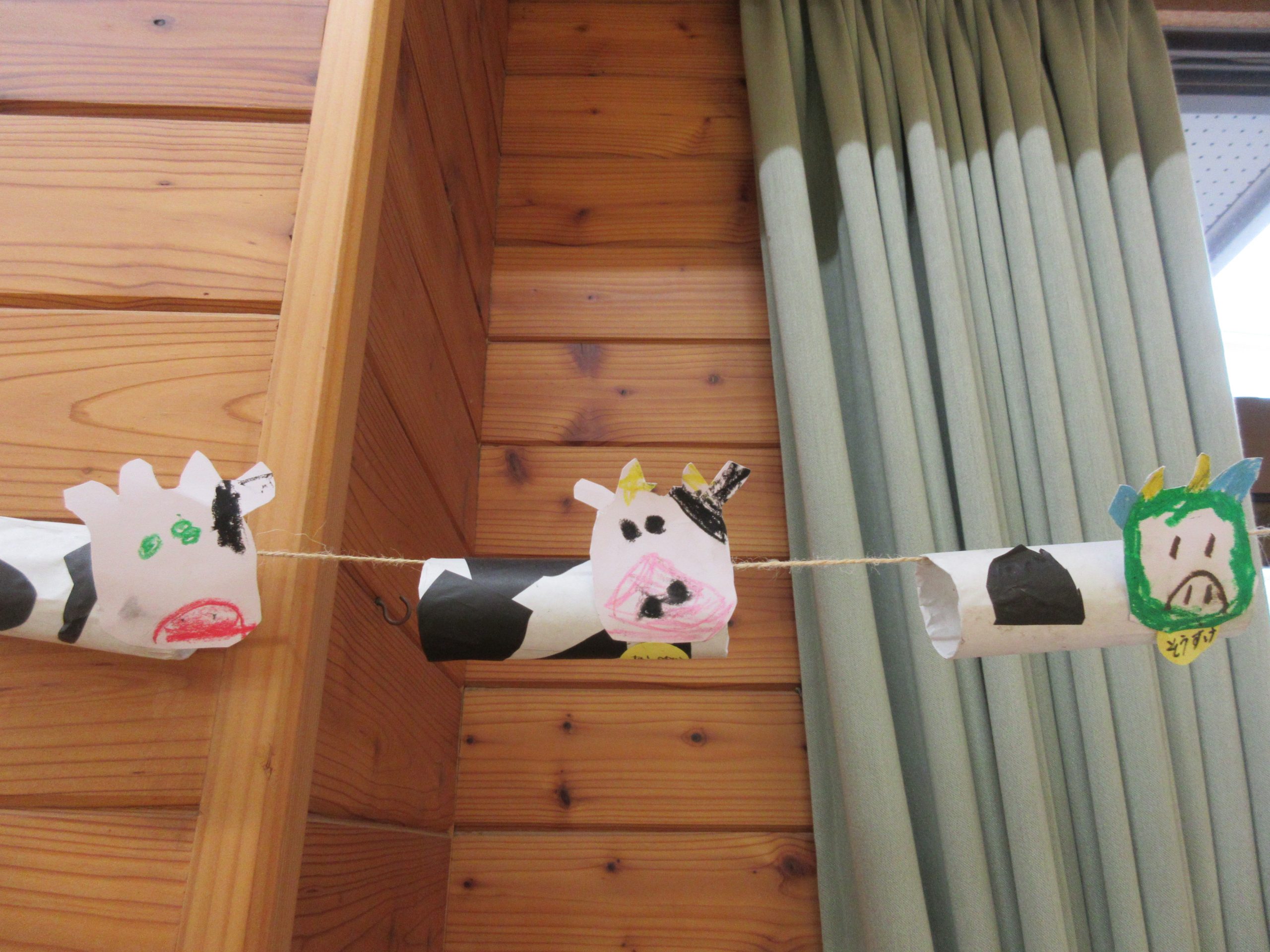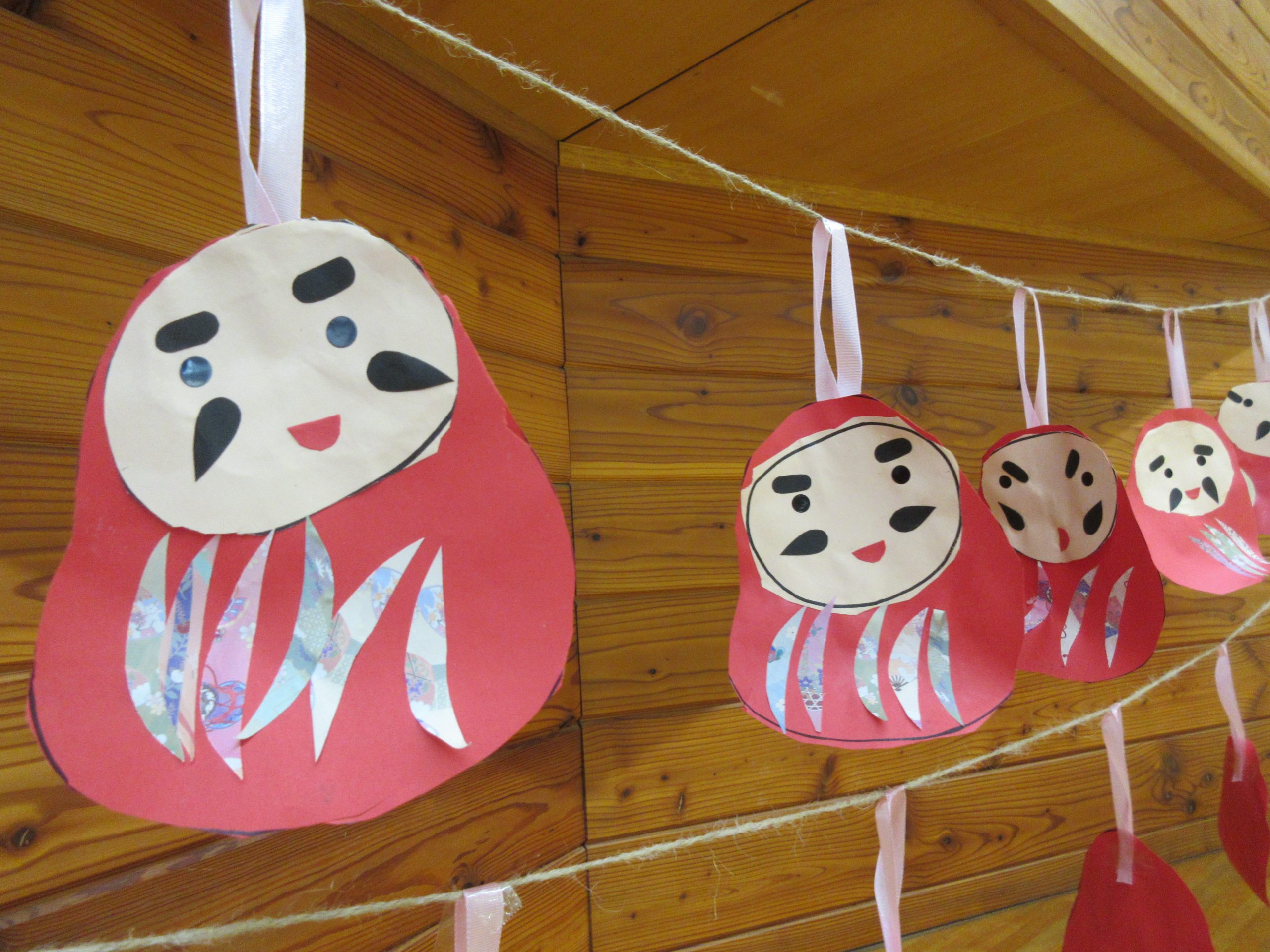 今年1年、良い年になりますようにと願いを込めながら、それぞれの学年でダルマやカルタ、牛を作りました。