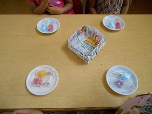 冷たいおやつ 2014 7/14 ニュース 30度を超える気温になった本日のおやつは、キャンデースティック☆ 机の上には、自分たちで折ったゴミ入れが用意されていました。 ニュース URLをコピーしました! 保育参観 今日の給食 7月14日(月) コメント コメントする コメントをキャンセルコメント ※ 名前 ※ メール ※ サイト 次回のコメントで使用するためブラウザーに自分の名前、メールアドレス、サイトを保存する。 上に表示された文字を入力してください。 Δ