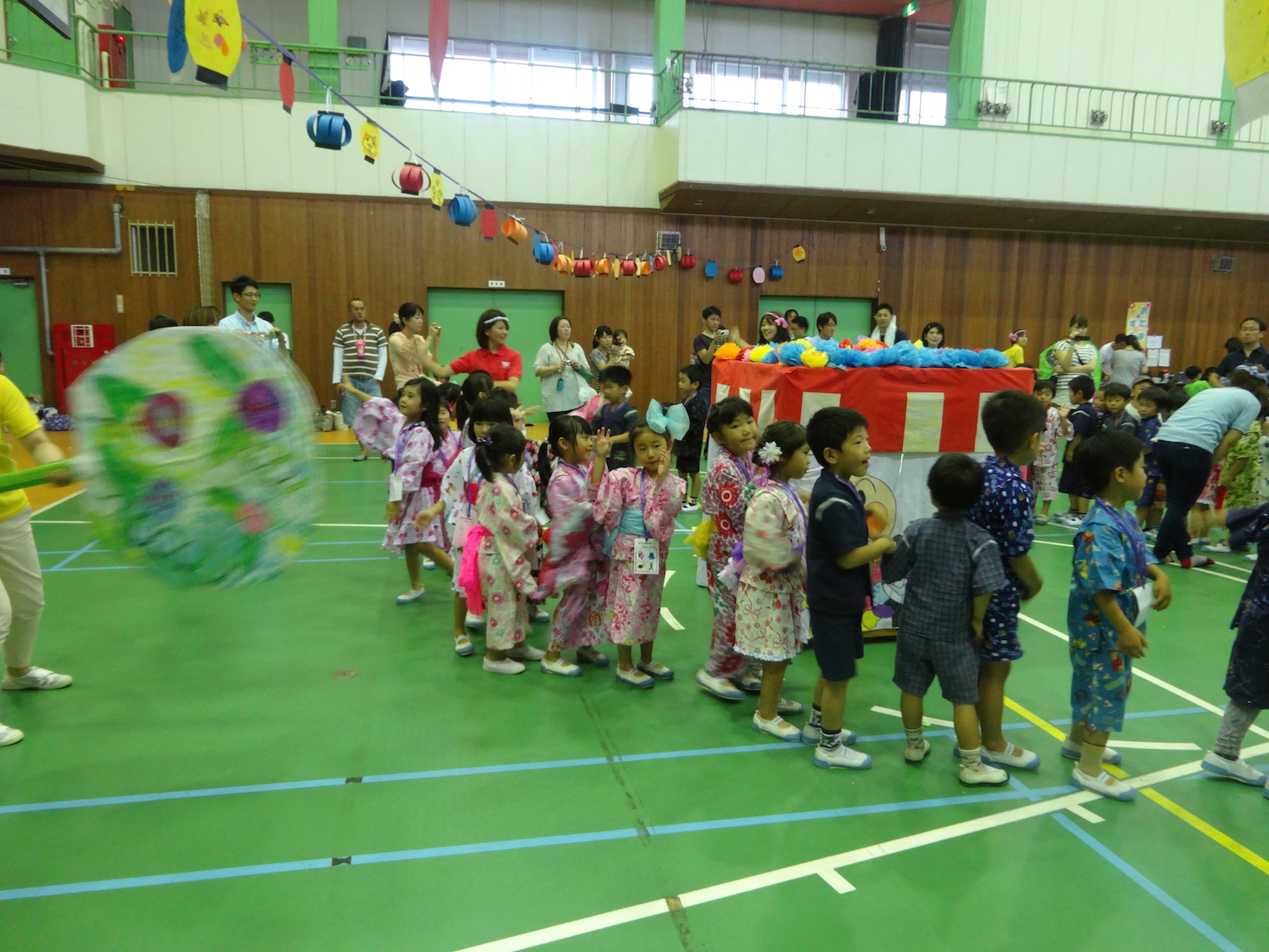 年長組さんがおみこしを練り歩いたり、みんなで盆踊りをしたりしました!