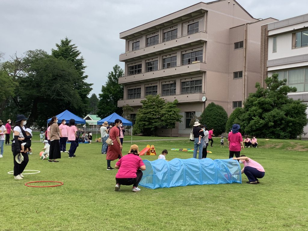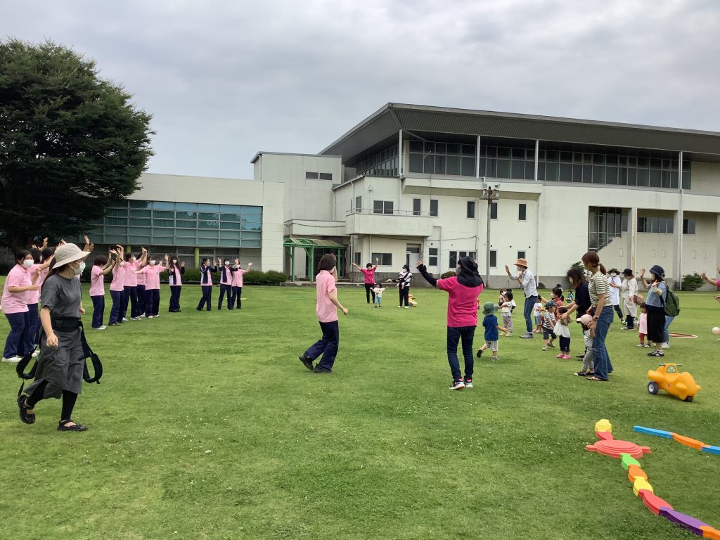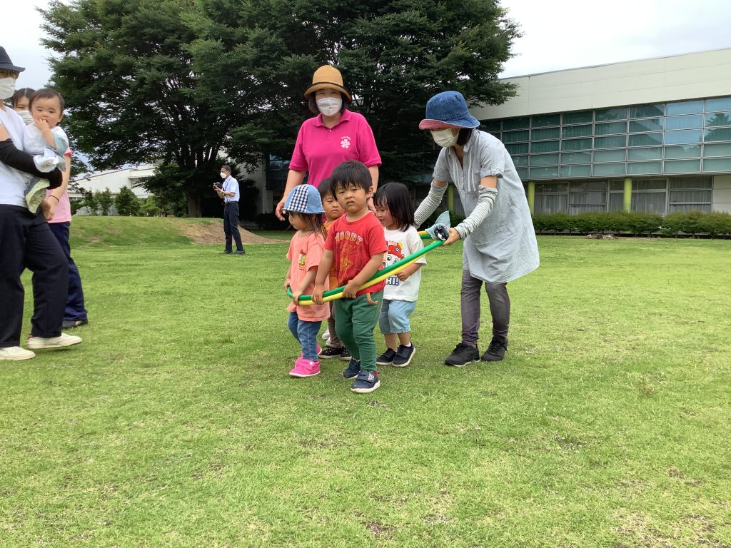 今回は「からだをいっぱい動かそう!」と短大の広々とした芝生で遊びました。