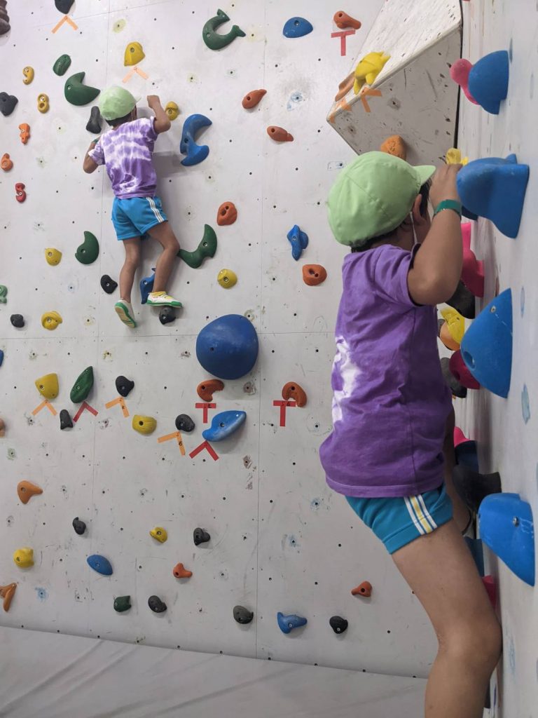 かなさ笑楽校に到着し,魚掴みとボルダリングを行いました。