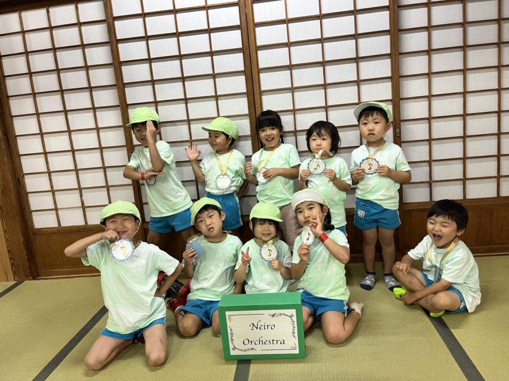 園に戻る前に,1日の振り返りをしました。楽しかった思いがたくさん伝わってきましたよ!素敵なメダルをもらい,満足気な表情です。