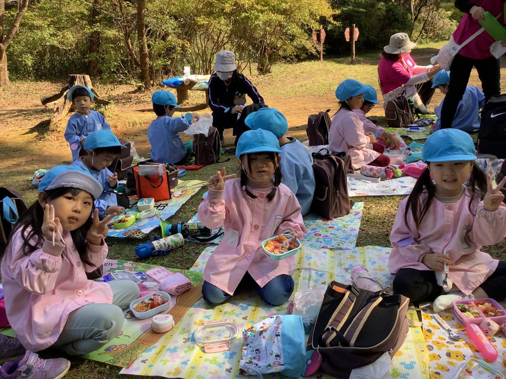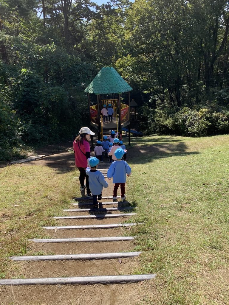同じグループの友達と協力したり,行き先を相談したり,みんなで意見を出し合ったり,友達のことを気に掛けたりしながらグループ活動を行なった4歳児の子どもたち。青空の元経験したことは今後の生活に繋がっていくことでしょう。素敵な1日になりましたね!