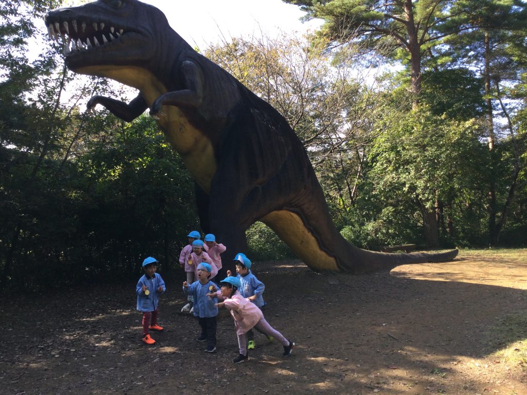 力のある4歳児のお友達。恐竜に乗ったり,ぶら下がったり,たくさん力を使って遊びました。