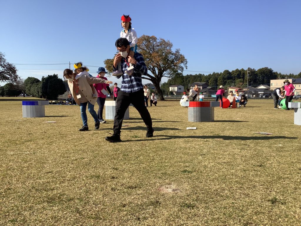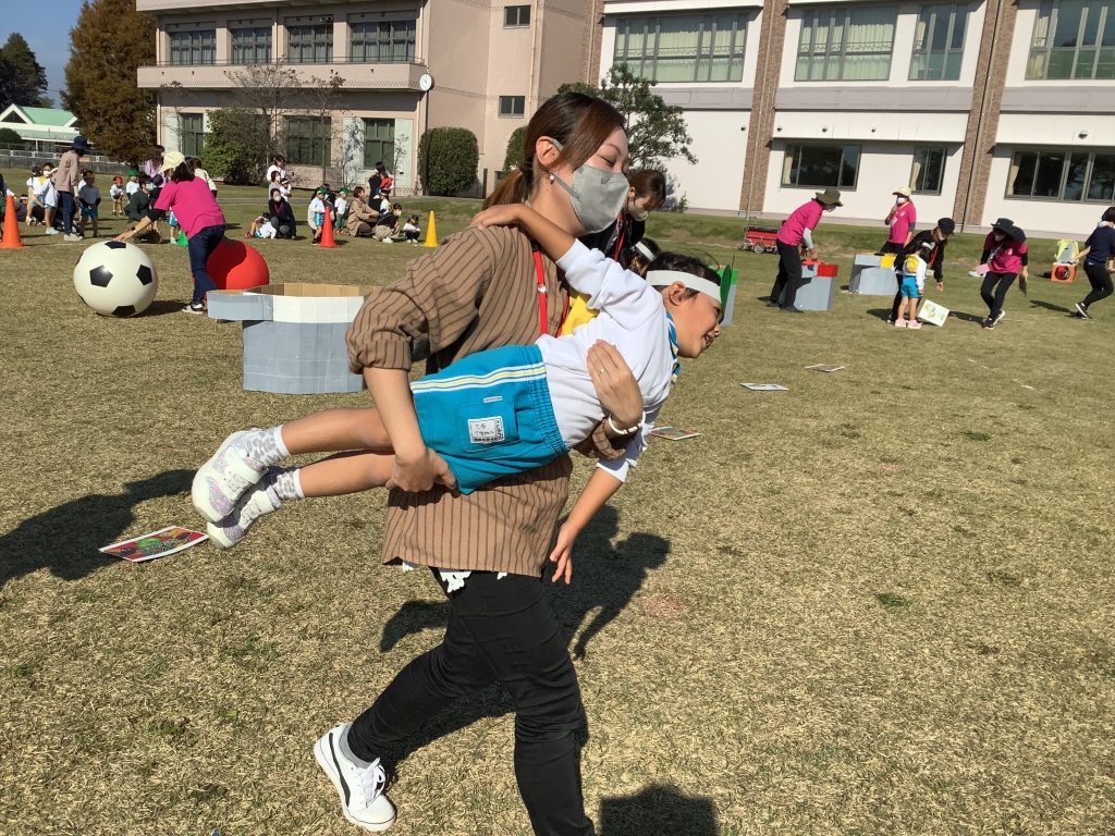 カードに書いてある,「だっこ・おんぶ(飛行機)・ひよこ歩き」に変身してゴール✨