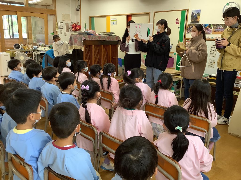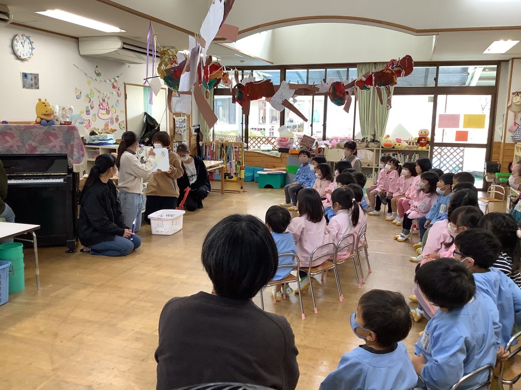 ♪短大生による音楽紙芝居♪ 2022 11/10 ニュース 茨城女子短期大学の学生が,各クラスに音楽紙芝居を見せに来てくれました。 手作りの紙芝居に,様々な楽器で音楽を奏でて,普段みる紙芝居とは一味違ったお話を楽しく見ることができました。 ニュース URLをコピーしました! 🎷青空コンサート🎺 3歳児 親子レクレーション コメント コメントする コメントをキャンセルコメント ※ 名前 ※ メール ※ サイト 次回のコメントで使用するためブラウザーに自分の名前、メールアドレス、サイトを保存する。 上に表示された文字を入力してください。 Δ