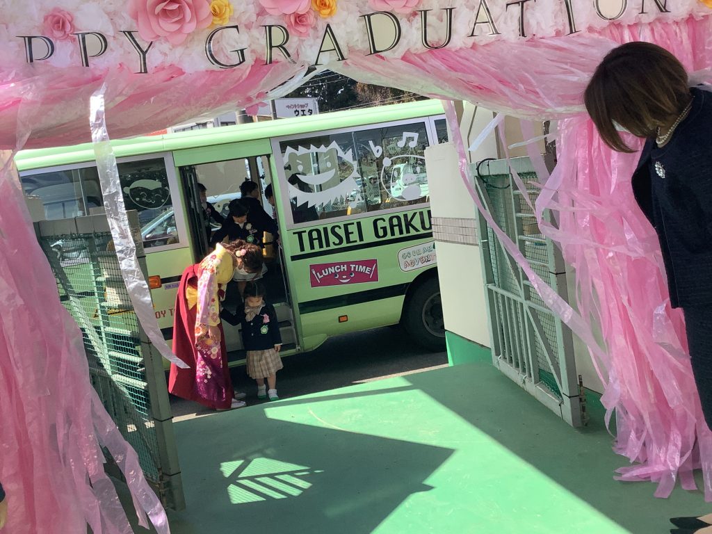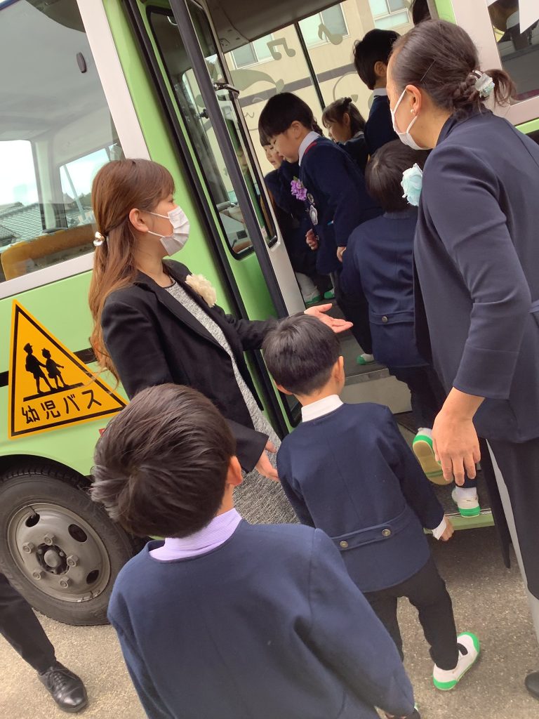 園バスに乗って,短大の体育館(式場)へレッツゴー🚌