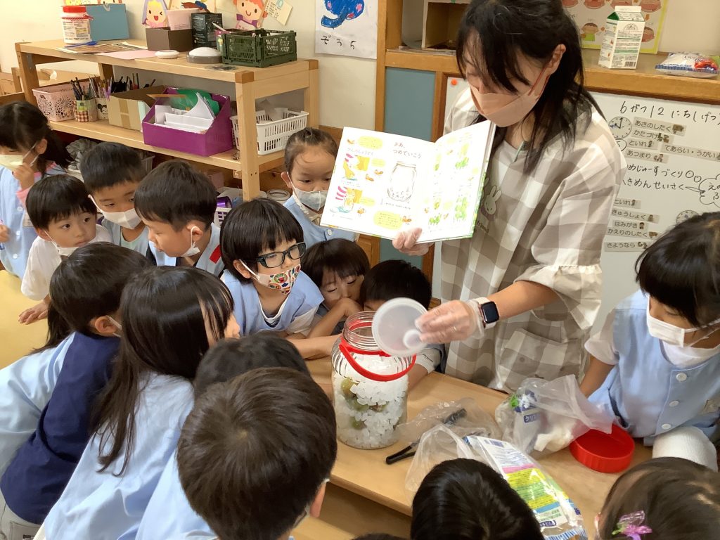 収穫した梅の実を使って,梅シロップ作り。材料や分量を調べたり,準備をしたり,クラスみんなで進めていきました。どんな味がするのかな〜?出来上がりが楽しみですね!