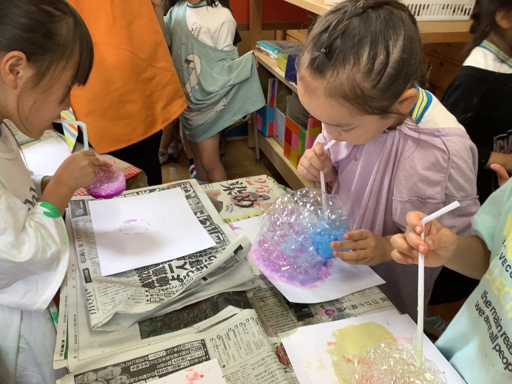 シャボン玉アートも楽しんでいます。絵の具と混ぜた泡🫧奇麗な模様ができました!