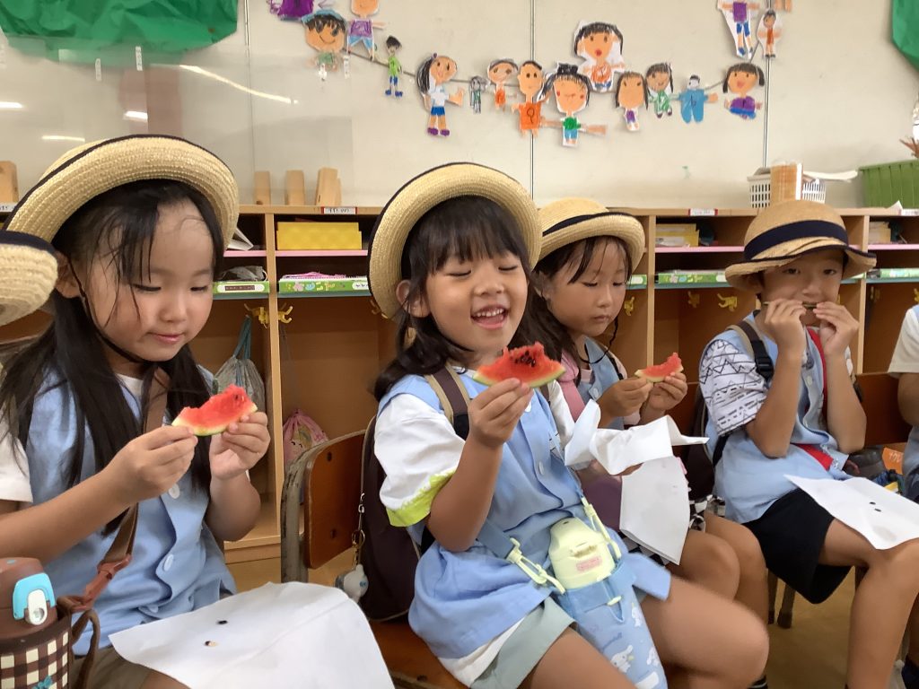 7月の給食にスイカがあると子どもたちは大喜びでした!
