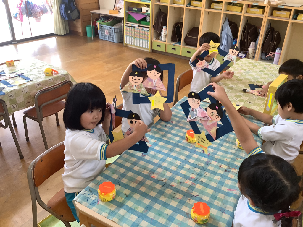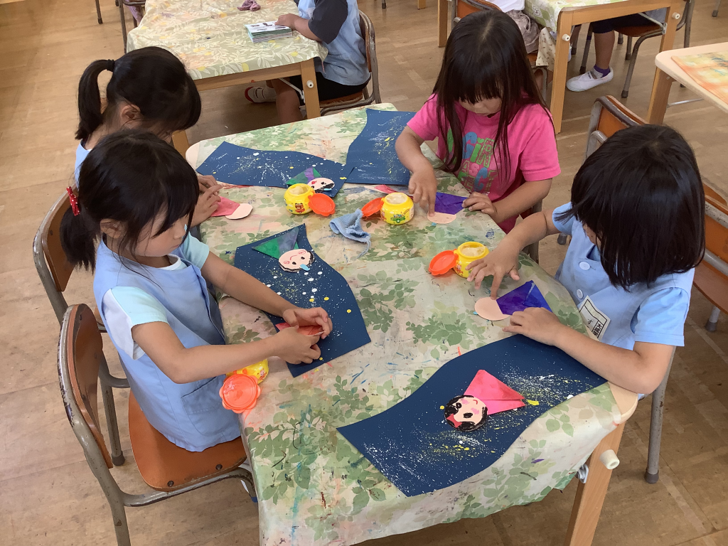 願いを込めながら製作する5歳児。”天の川”をイメージしながら作りました⭐️