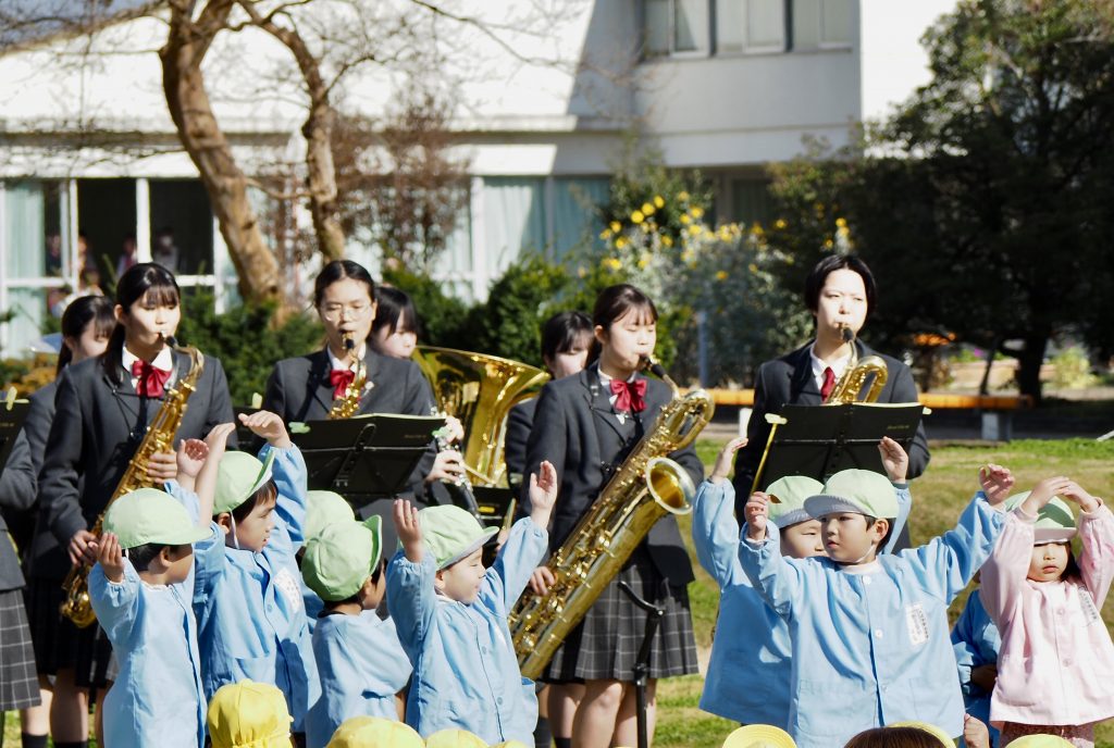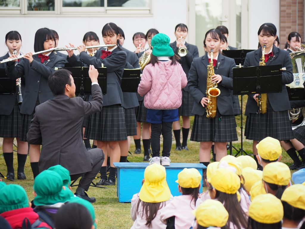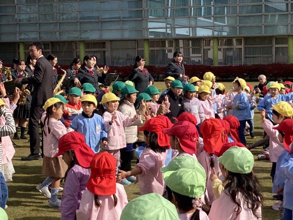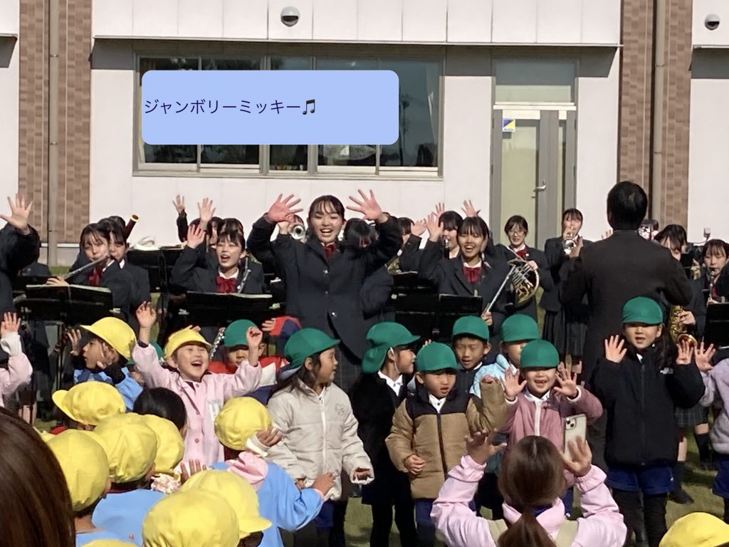 最後は全員で「ジャンボリミッキー!」子どもたちも,高校生もみんなが満面の笑顔になりました☺️様々な楽器の音色が,青空に響いたとっても楽しい1日になりました♡